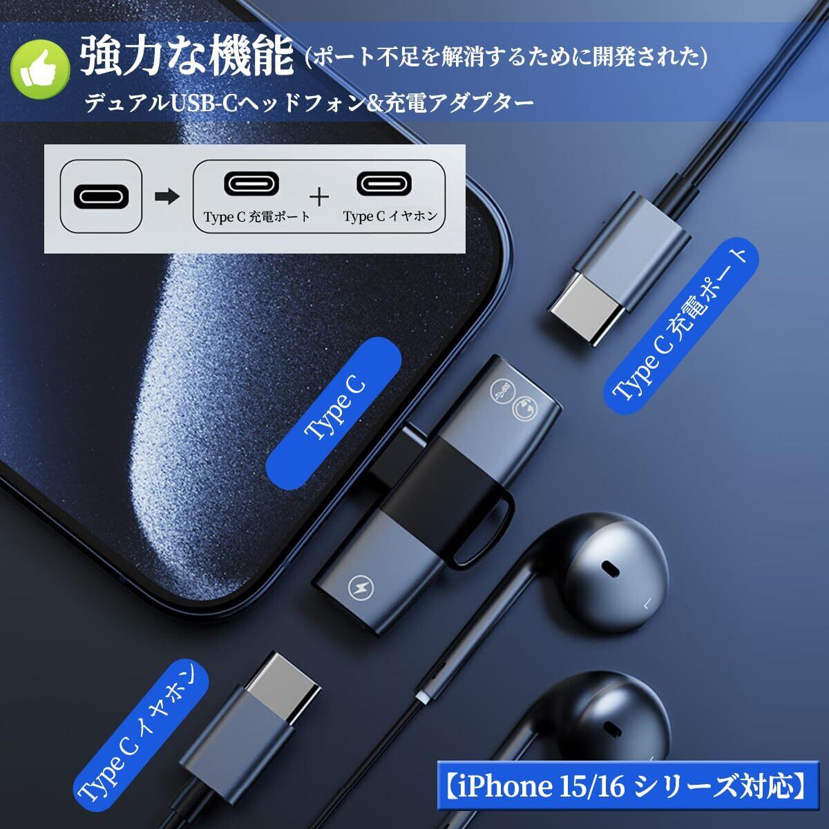 【新着商品】【iPhone 16/15 シリーズ対応】 2in1 タイプC イヤホン変換 アダプタ Topamz 音楽聞きながら充電でき Type-C to デュアルUSB-C イヤホンジャック PD 100W急速充電 DAC搭載 Hi-Fi音質 通話/音量調節/音楽対応 Phone16シリーズ/15/Android/Pad/Type Cなど機器に適用(グレー)
