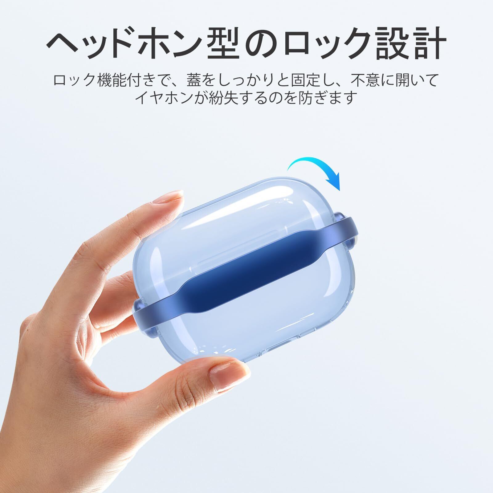【2025最新】HEIGKOIK AirPods Pro 第3世代 ケース 2025年発売 エアポッズプロ3 カバー TPU クリア 透明 黄変防止 ロック付き LEDインジケーター可視 耐衝撃 落下防止 カラビナ付き 携帯便利 スタンド機能 ワイヤレス充電対応 おしゃれ かわいい 軽量 薄型 (クリアブルー, AirPods Pro3)