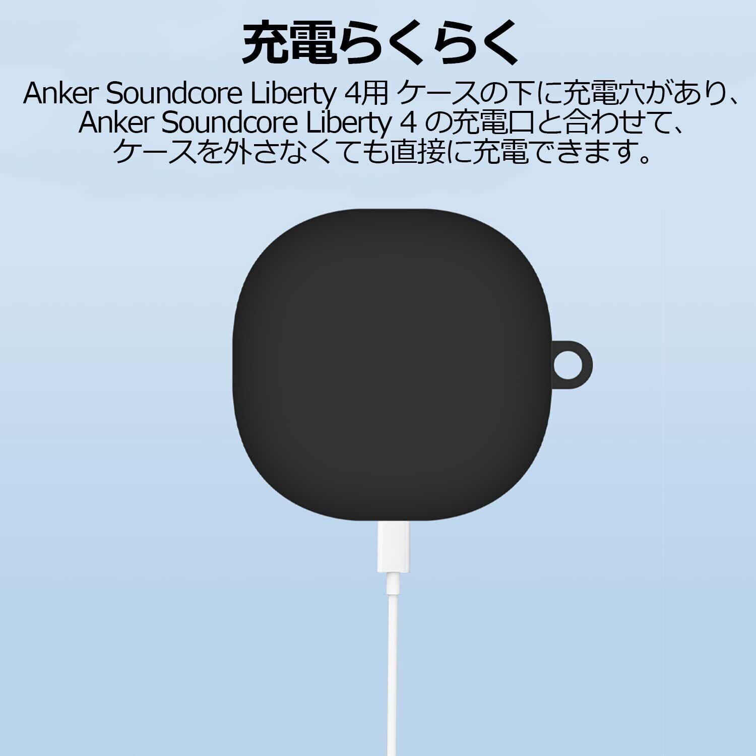 【2025最新】TALENANA for anker soundcore liberty 4ケース シリコーン 保護カバー 耐衝撃 防水 防塵 キズ防止 装着充電可能 全面保護ケース イヤホン カラビナ付き anker soundcore liberty 4 対応(ブラック)