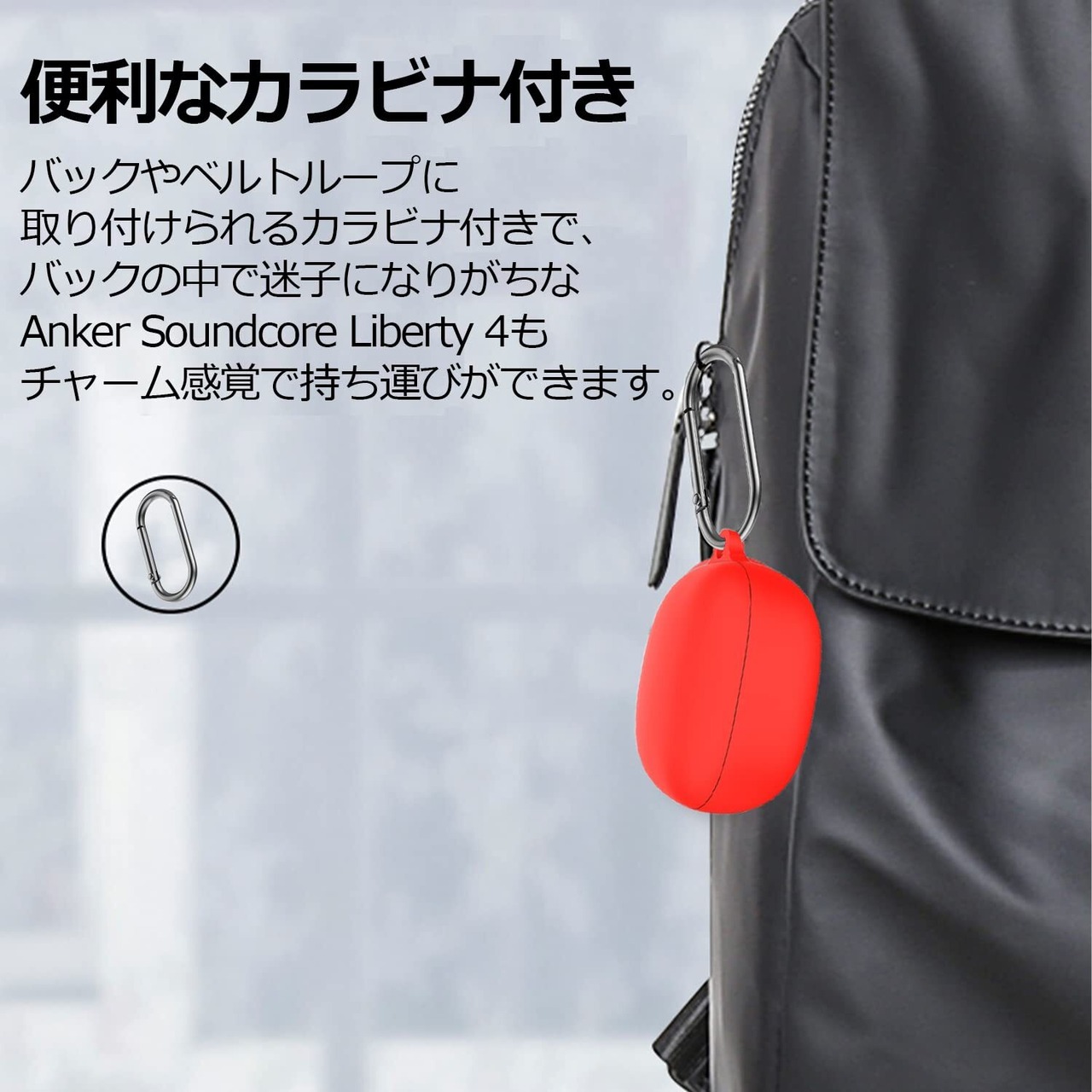TALENANA for anker soundcore liberty 4ケース シリコーン 保護カバー 耐衝撃 防水 防塵 キズ防止 装着充電可能 全面保護ケース イヤホン カラビナ付き anker soundcore liberty 4 対応(ブラック)