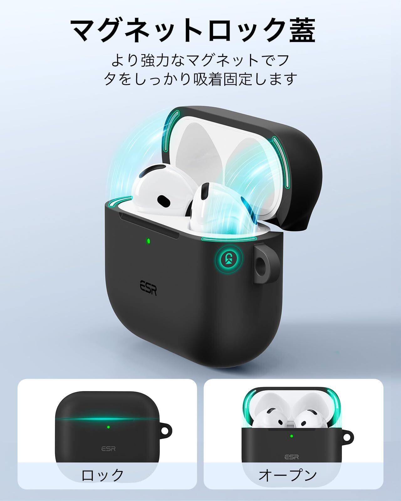 【特別価格】ESR AirPods 4 ケース (HaloLock) AirPods 第4世代 ケース (2024) (USB-C) 対応 MagSafe 対応 カラビナ付き完全落下防止カバー Cloudシリーズ ブラック