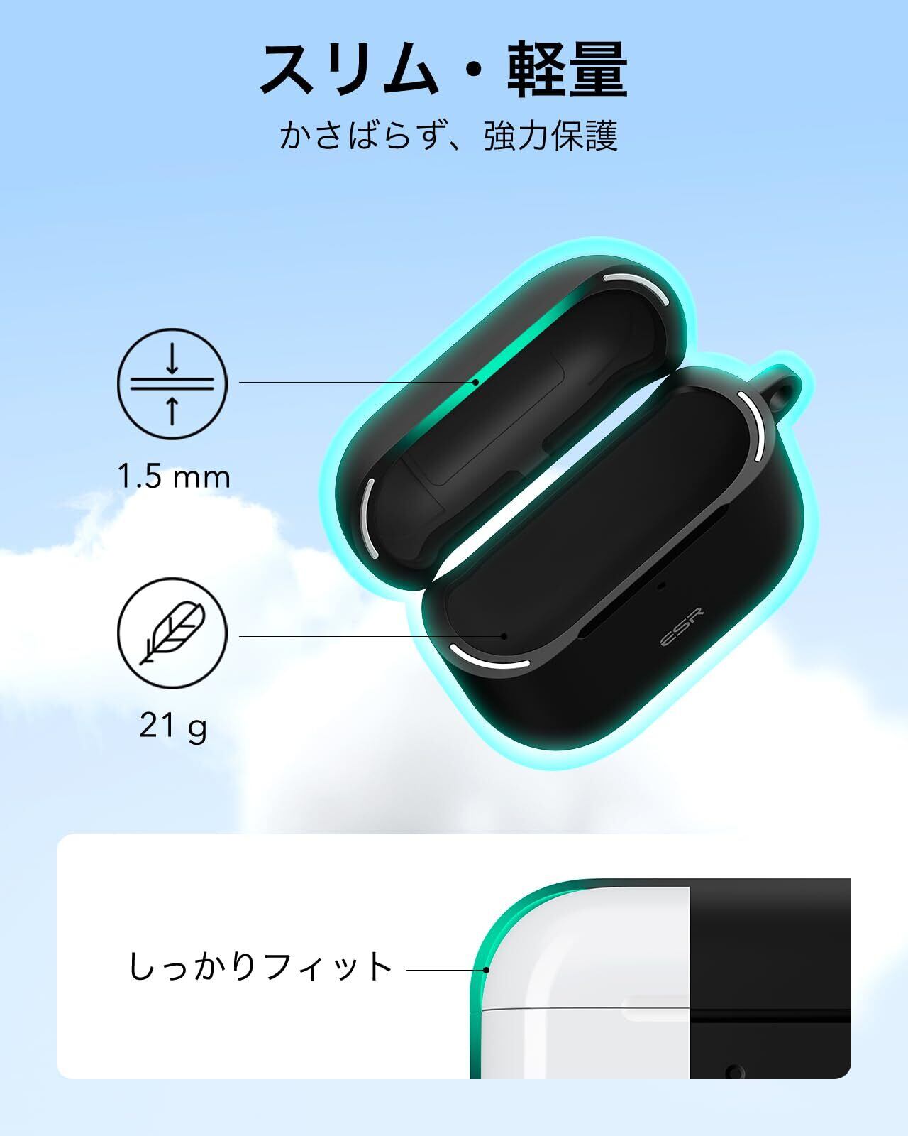【スリムかつ軽量】:わずか21g、厚さわずか1.5mmのプレミアムシリコンは、絹のように滑らかな感触で、グリップ力を高め、AirPodsの洗練されたデザインをキープします。