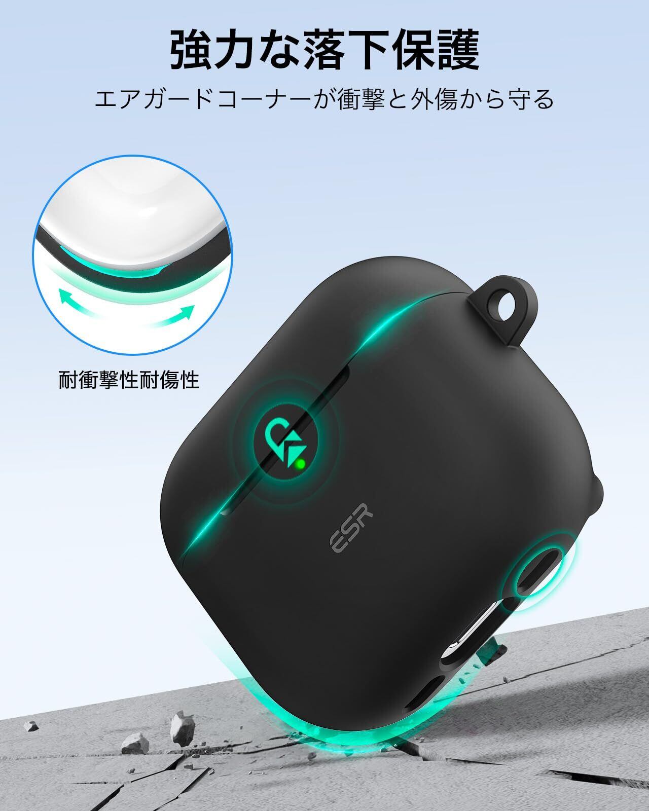 ESR AirPods 4 ケース (HaloLock) AirPods 第4世代 ケース (2024) (USB-C) 対応 MagSafe 対応 カラビナ付き完全落下防止カバー Cloundシリーズ ブラック