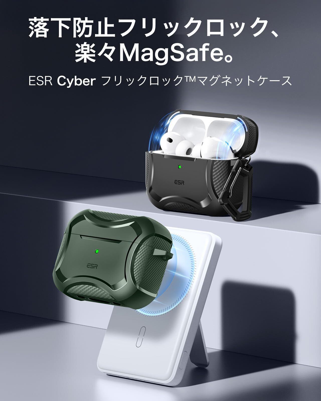 ESR AirPods Pro 3 ケース(2025年モデル)MagSafe対応 USB-Cケーブル対応 マグネットカバー ワイヤレス充電可能 強力落下保護 キズ防止 エアーポッズプロ3用 Cyberシリーズ グリーン