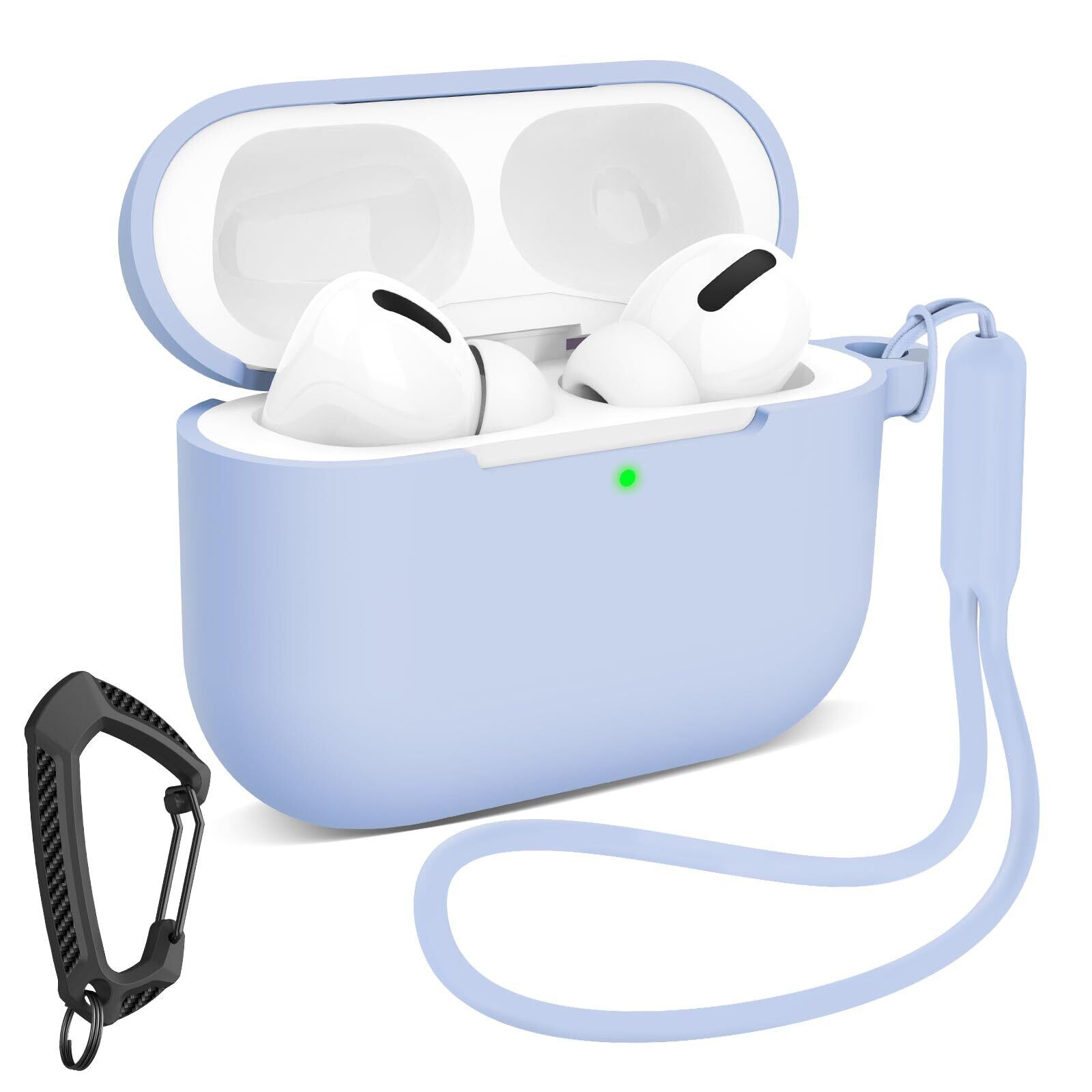 MILPROX AirPods Pro 3 ケース(2025)エアーポッズ プロ 第3世代 専用ケース シリコン ソフト 全面保護 耐衝撃 防震 防塵 落下/紛失防止 ワイヤレス充電対応 カラビナ&シリコン製ストラップ付き(ブルー)