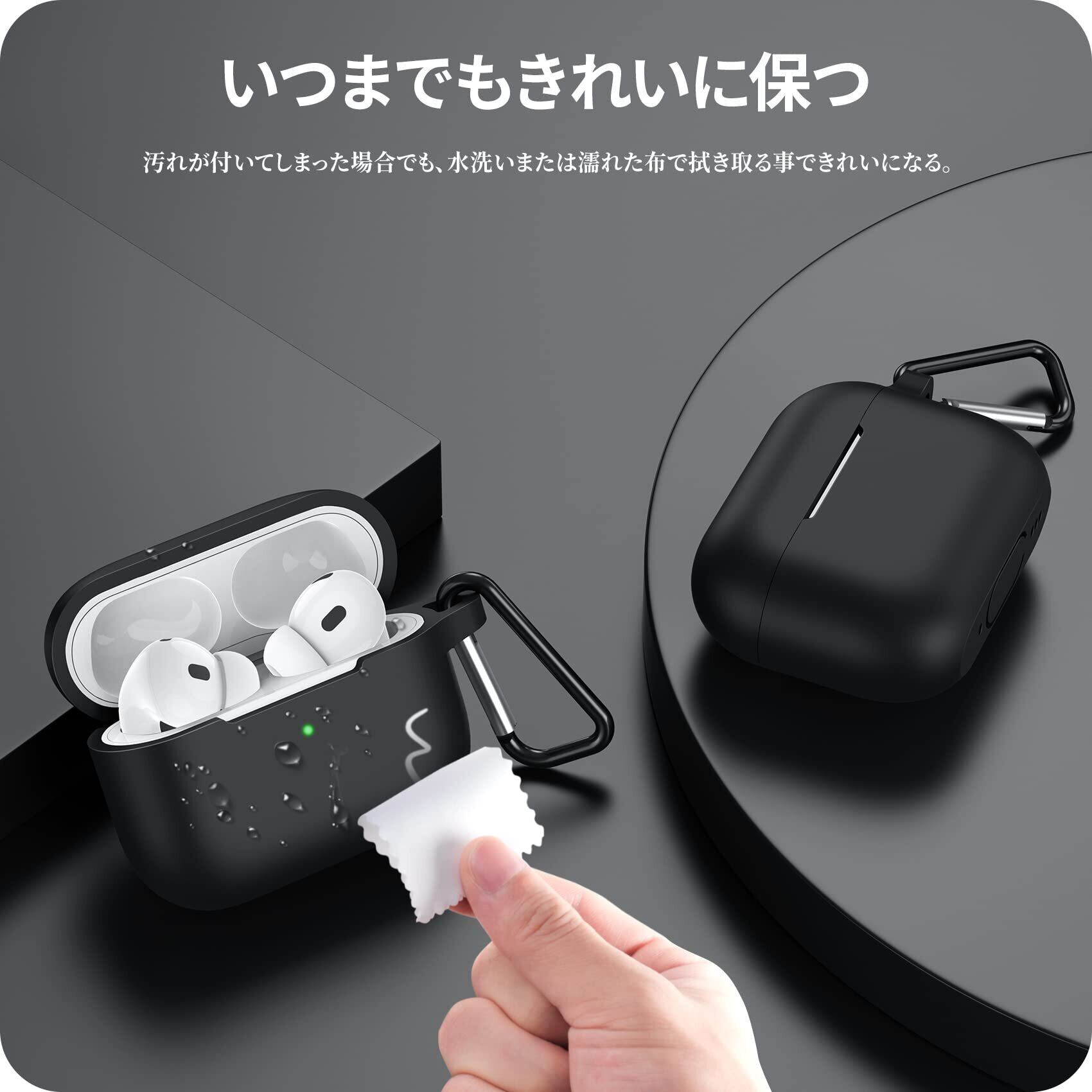 NIMASO ケース AirPods Pro 2 第2世代 専用 カバー エアーポッズ プロ 2世代 シリコン 保護 ケース カラビナ付き ワイヤレス充電対応 (ブラック) NEC22H562