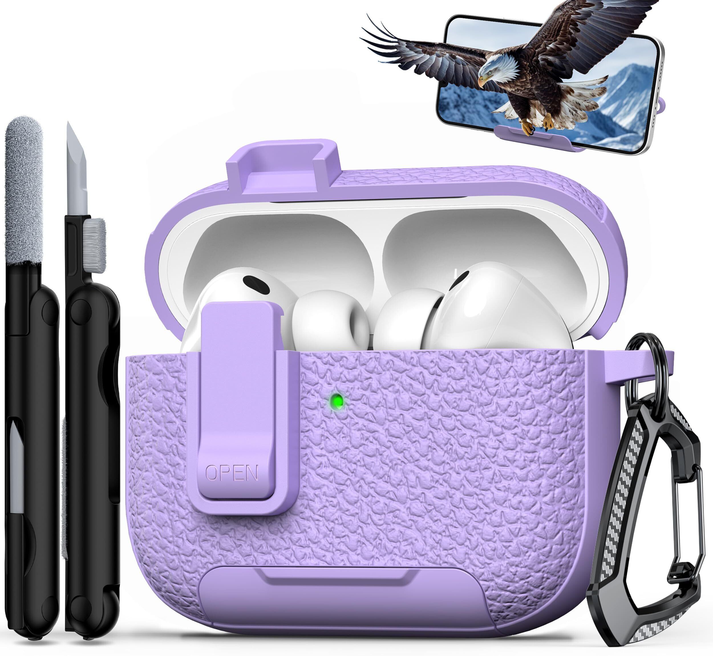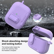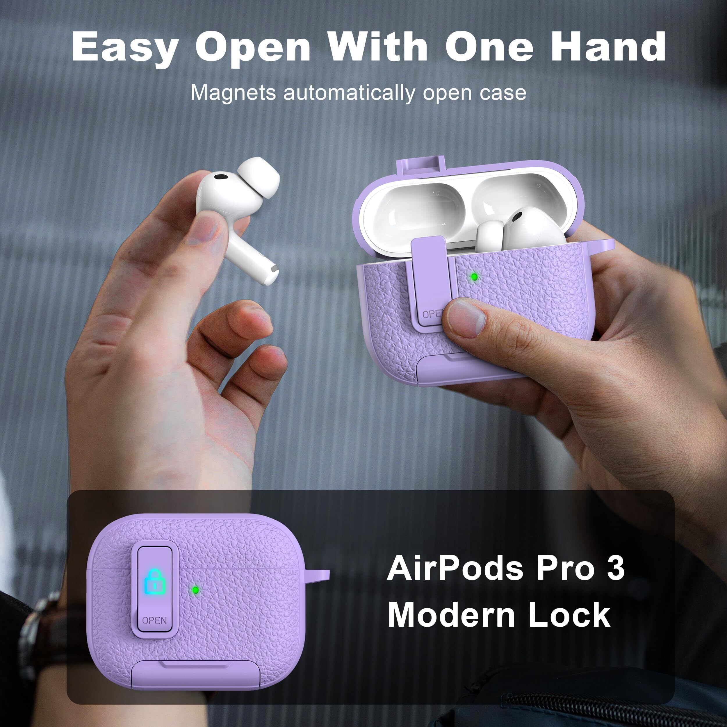 【限定セール】RFUNGUANGO AirPods Pro 3保護ケース レザー、キーチェーン、スマホホルダー付き。AirPods Pro 3保護ケース対応。耐衝撃性と傷に強い(パープル)