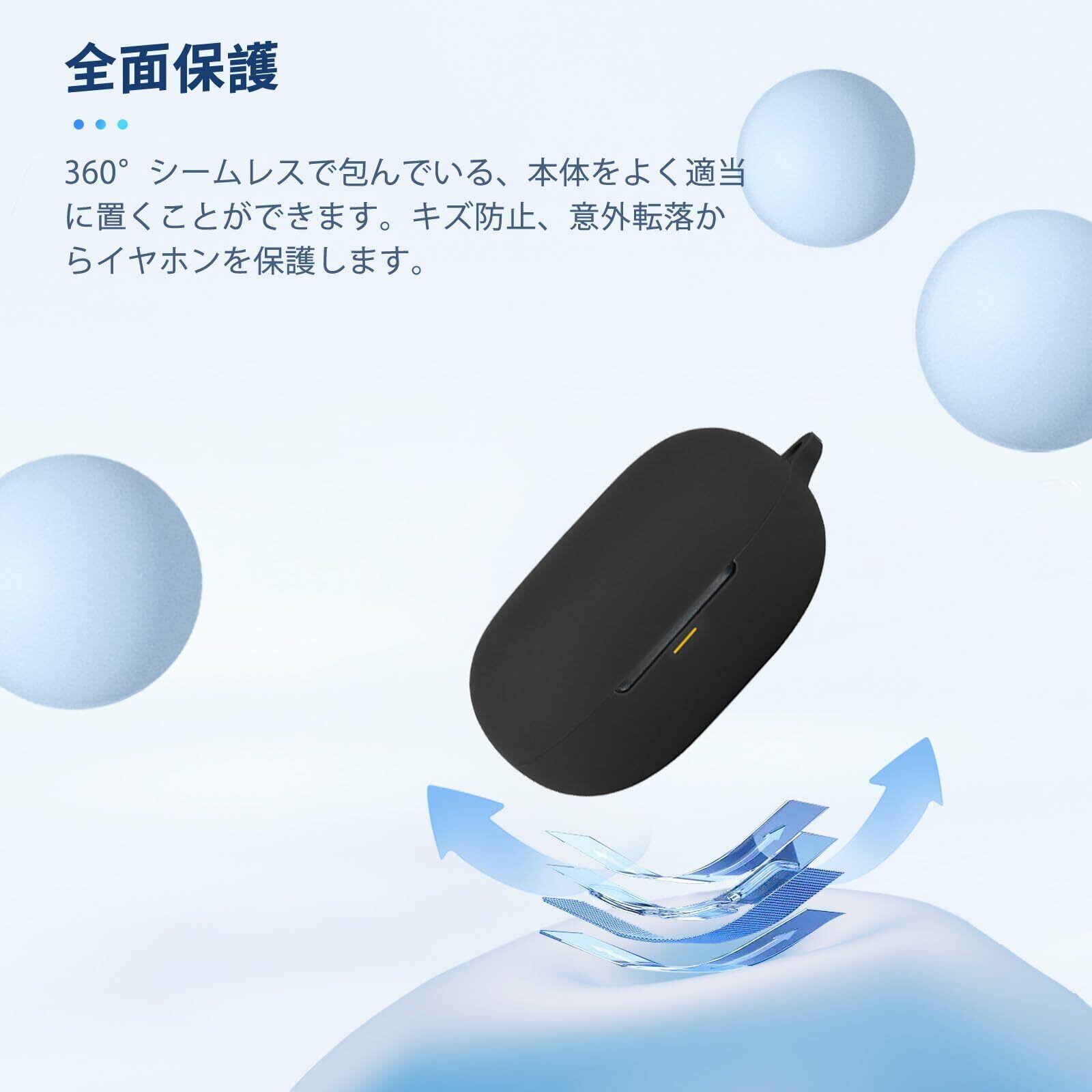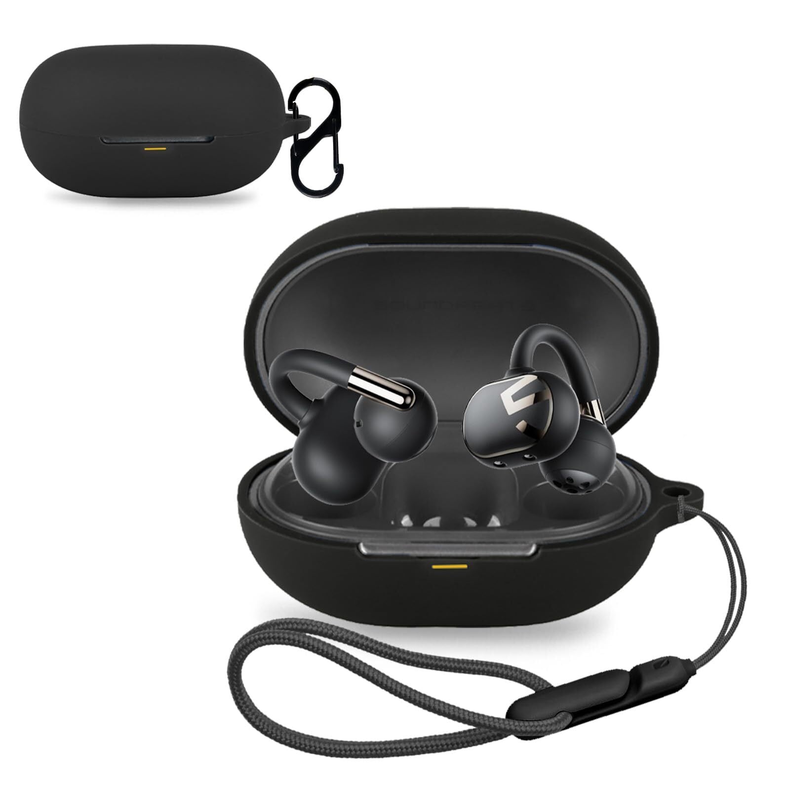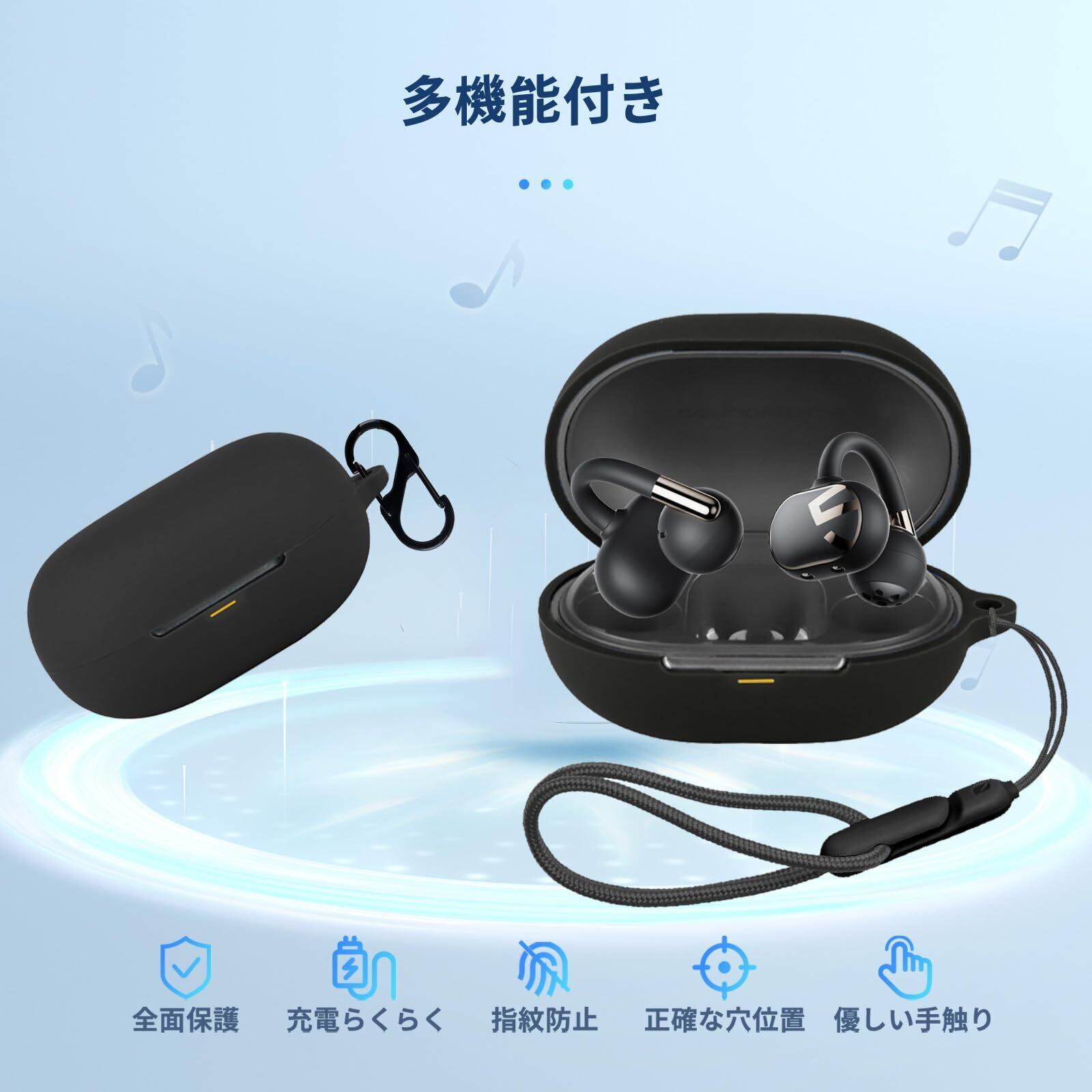 For SOUNDPEATS Clip1 用 ケース カバー 【NOUKAJU】 ワイヤレス イヤーホン シリコン 保護ケース (カラビナ付き+ストラップ付き ) 落下防止 キズ防止 耐衝撃 装着充電可能 防水 防塵 (ブラック)