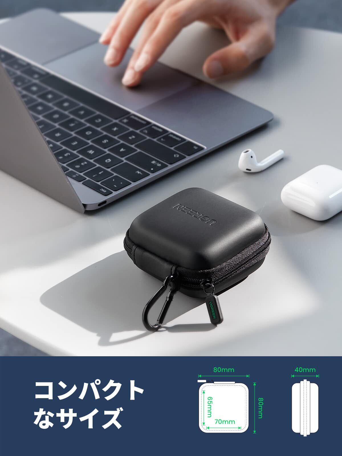 【数量限定】UGREEN イヤホンケース ケーブルカバー ミニボックス 内側ネットポケット付き 充電アダプタ USBメモリ Airpods Bose SD TFカード 鍵など対応 ブラック
