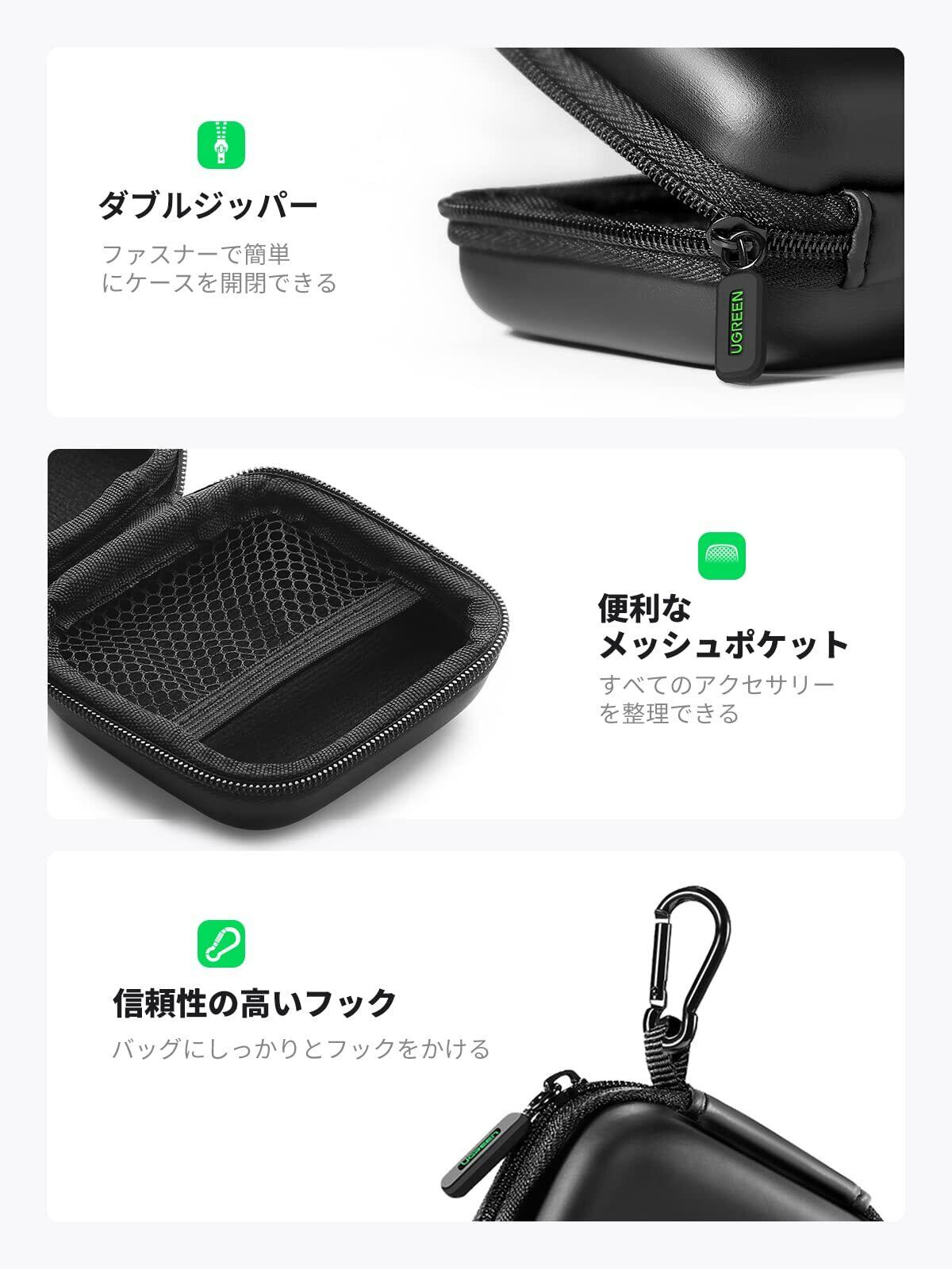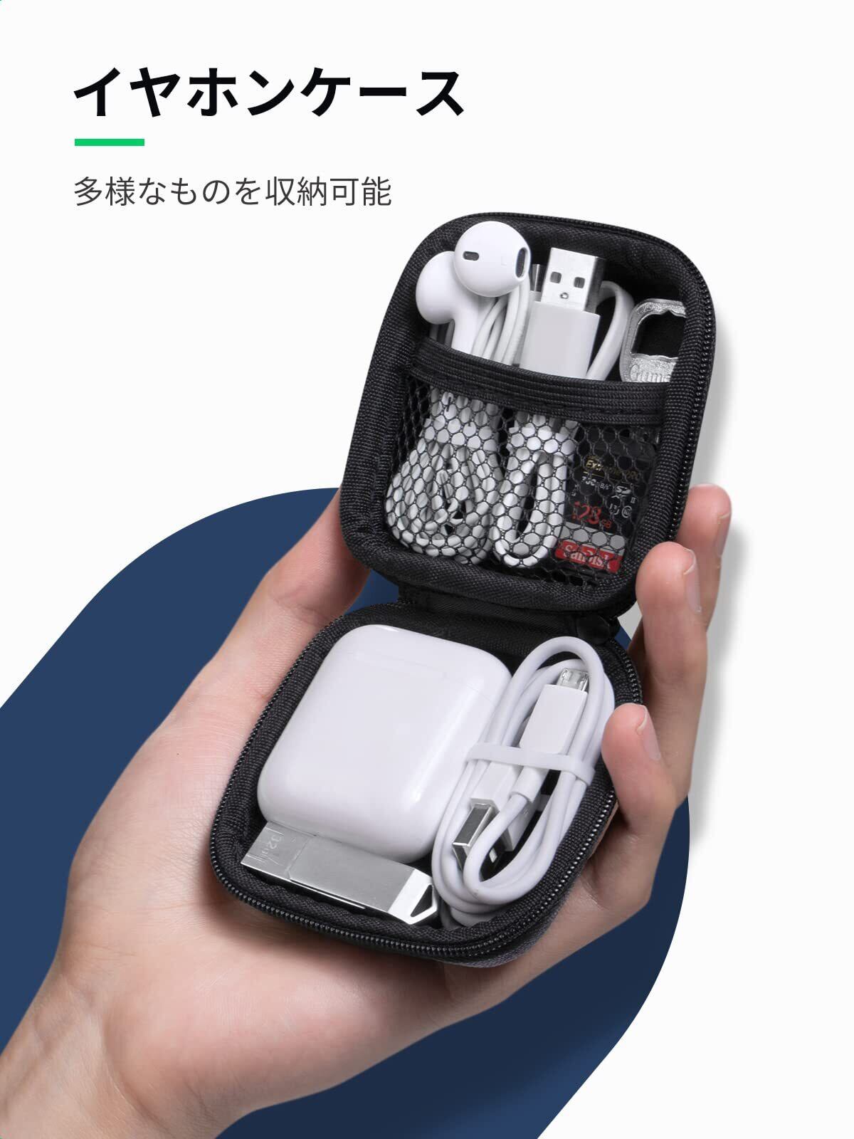 UGREEN イヤホンケース ケーブルカバー ミニボックス 内側ネットポケット付き 充電アダプタ USBメモリ Airpods Bose SD TFカード 鍵など対応 ブラック