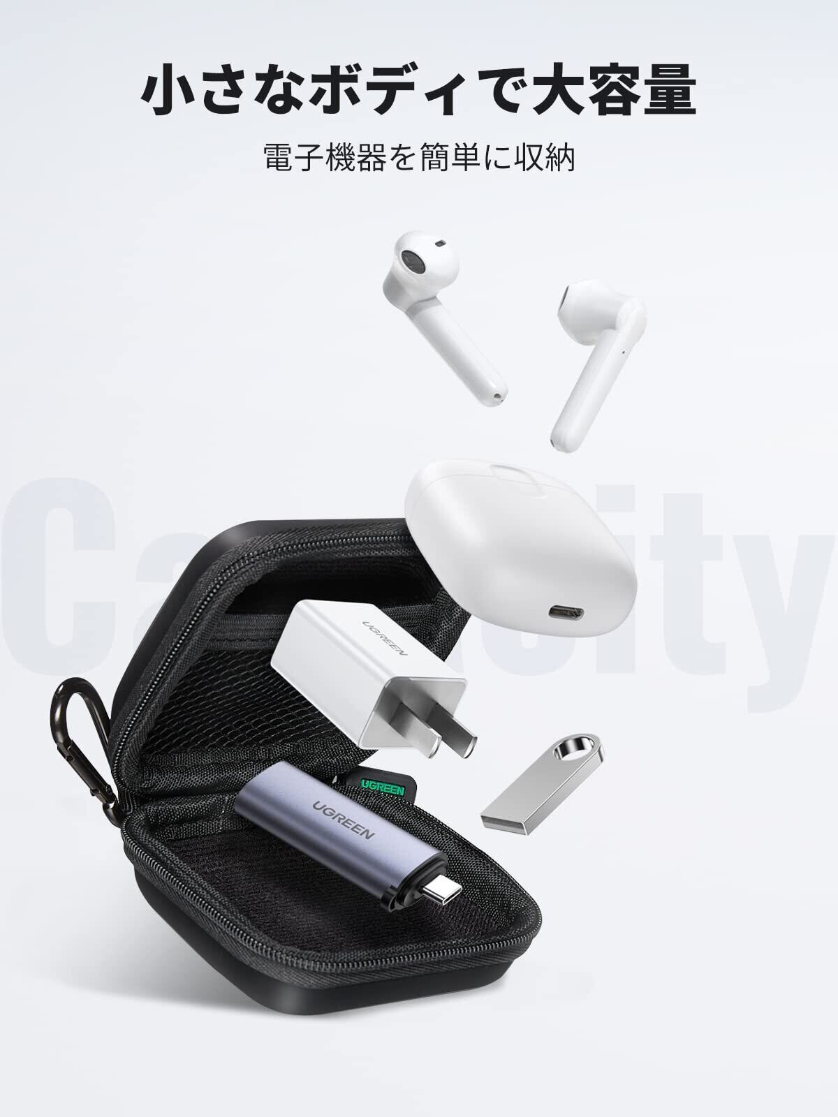 「UGREENの多機能イヤホンケースで、収納力抜群のスタイリッシュなアイテムを手に入れ、日常生活をさらに快適にしましょう!皆様のご購入を心よりお待ちしております!」