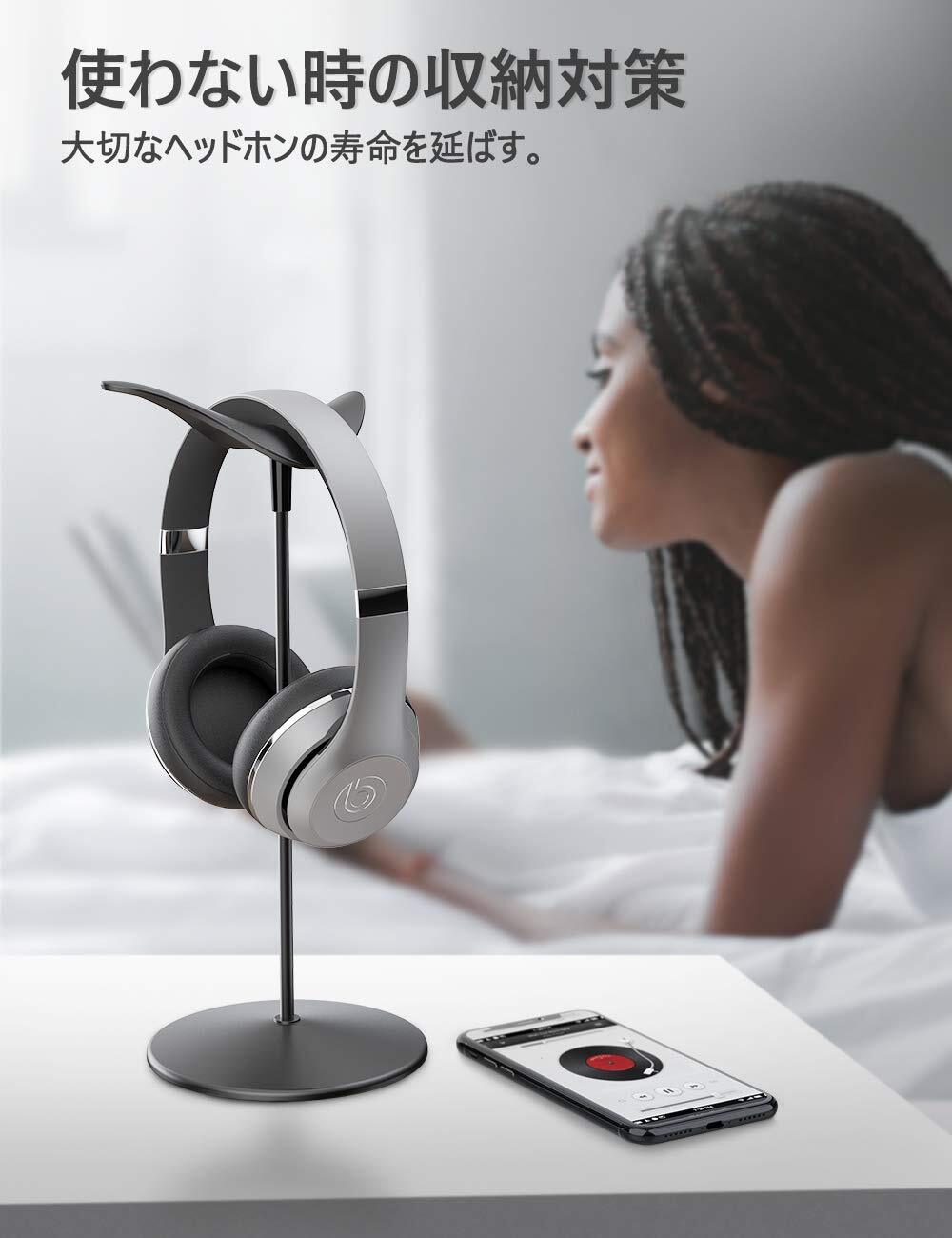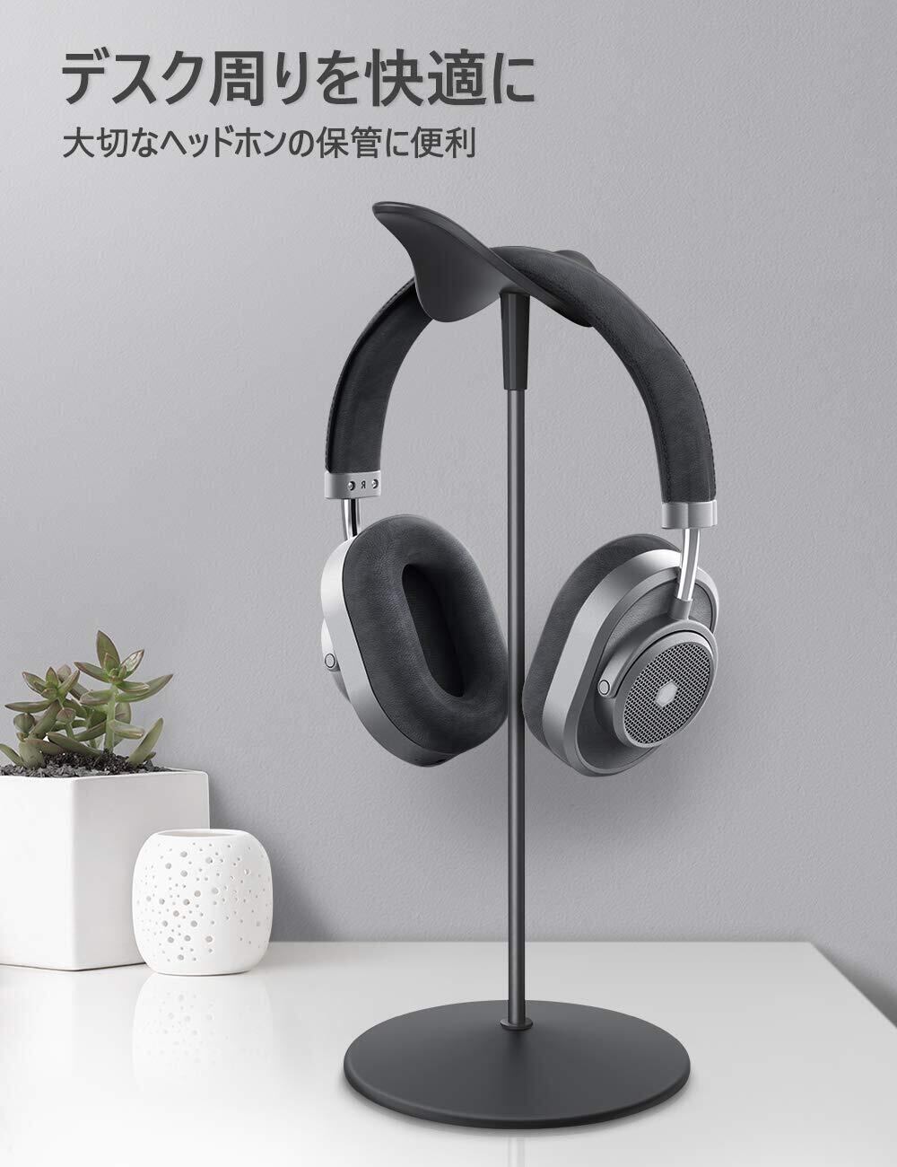 【収納対策】すっきりとした外観でスペースをほとんど取らず、卓上にヘッドホンを収納できて非常に便利です。軽量で頑丈、シンプルながら存在感のあるヘッドホンスタンドです。机上にヘッドホンスタンドを置くスペースがないと困っている方にお勧めします。