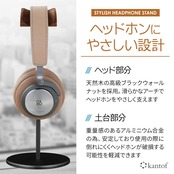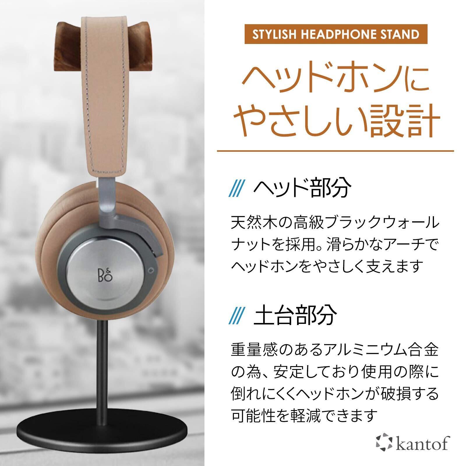 kantof(カントフ) ヘッドホンスタンド 天然木 高級ブラックウォールナット+アルミニウム合金仕様 ヘッドホン スタンド 上品な ヘッドホンハンガー テレワーク ゲーミング インテリア (ブラック)