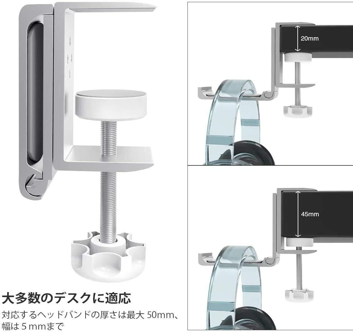 【優れたデザイン】ヘッドセットホルダーのフック とクランプの表面は滑り止め、傷防止用のシリコンパッドを採用し、机を傷つけることを防止できます。フックに柔らかいクッションや、掛け先端に落下防止の設計は、大事なヘッドホンをちゃんと保護できます。