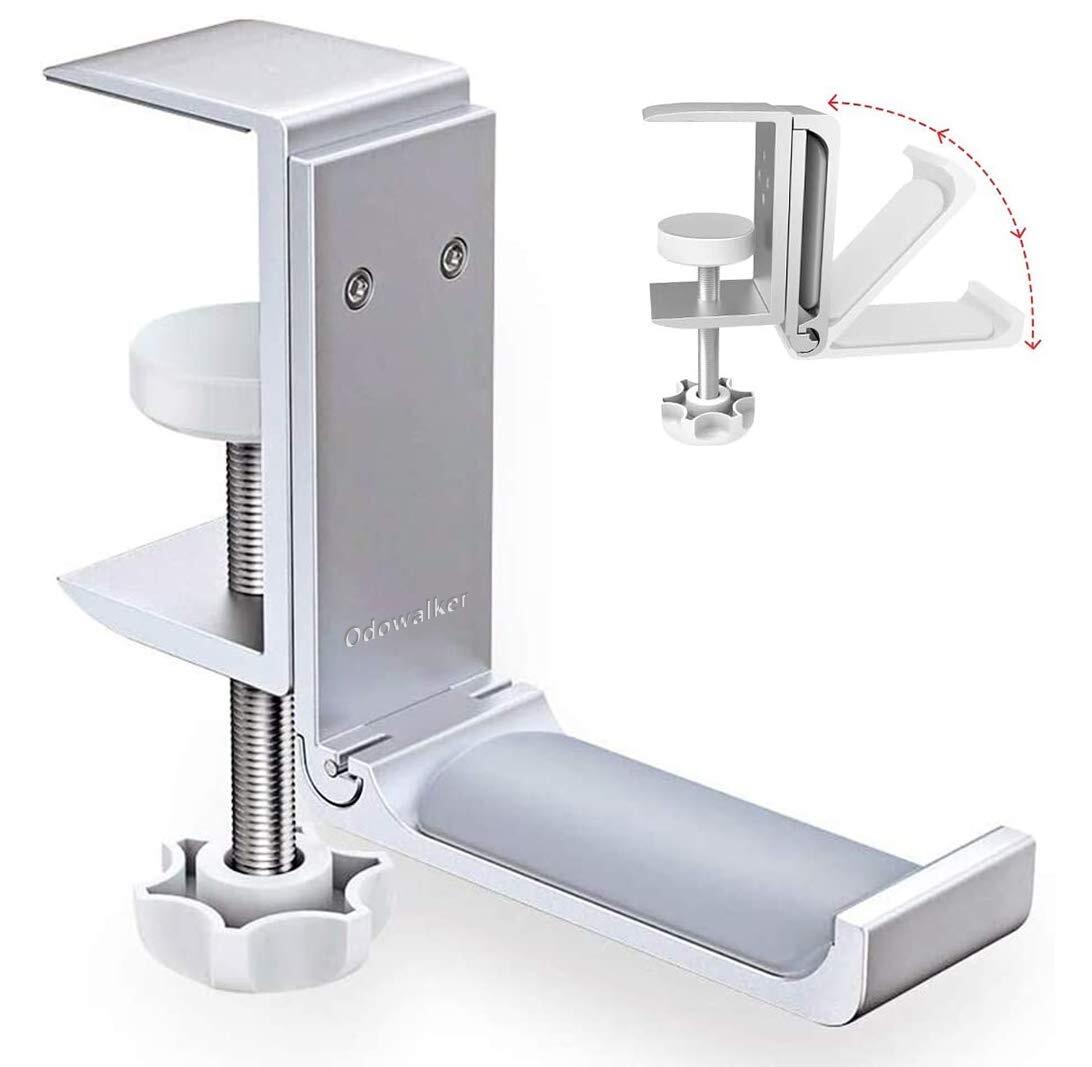 Odowalker 折り畳み式ヘッドホンスタンド 折りたたみフック デスクトップスタンド テーブルフック アルミ合金製 ヘッドホンハンガー ミニ六角レンチ付き ヘッドセット ハンガー (シルバー)