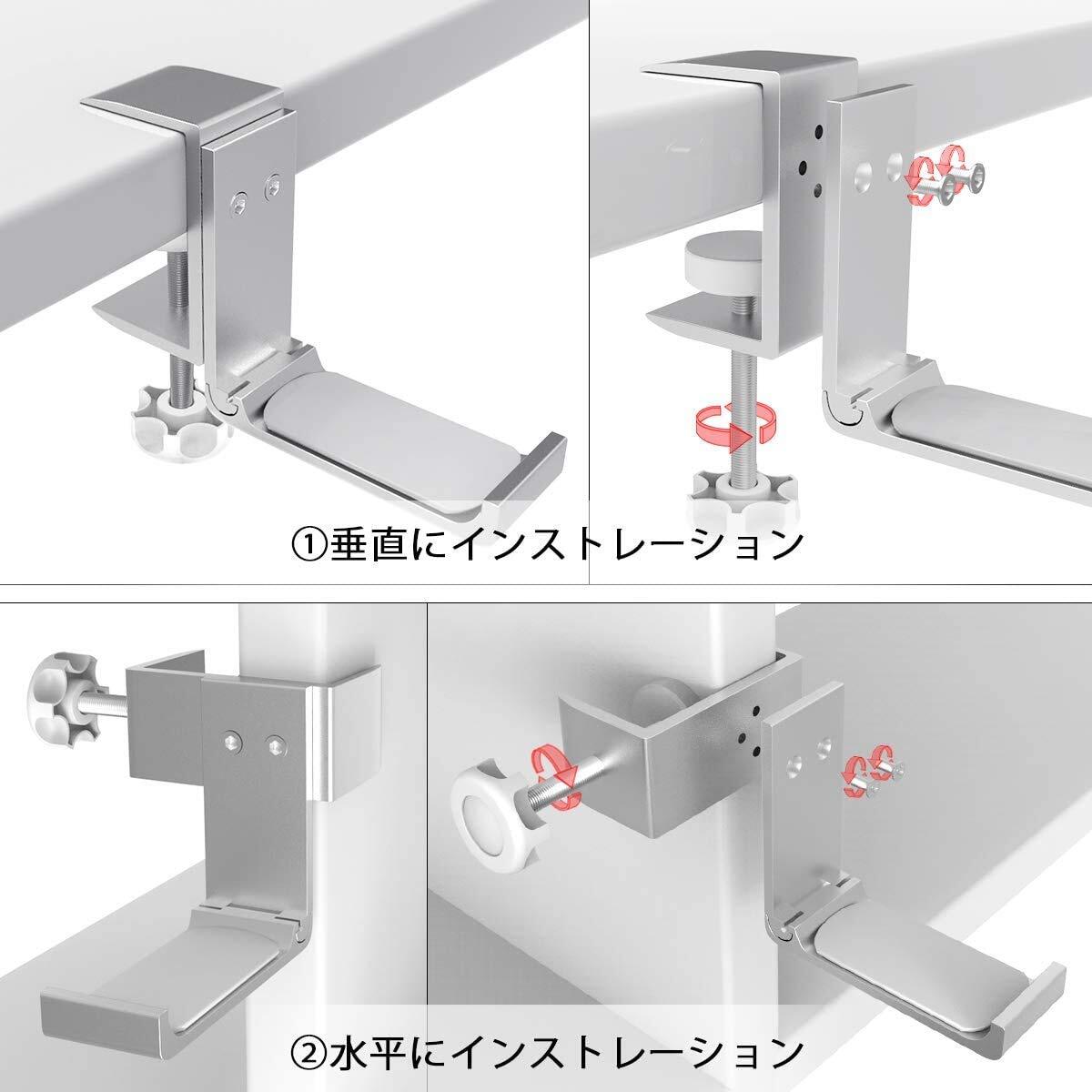【取り付け簡単】ヘッドフォンスタンドは、ネジクランプを採用し、簡単に設置できます。取り外しも簡単で、使用しない時、ヘッドホンフックを取り外しても、デスクの上に何の跡も残しません。