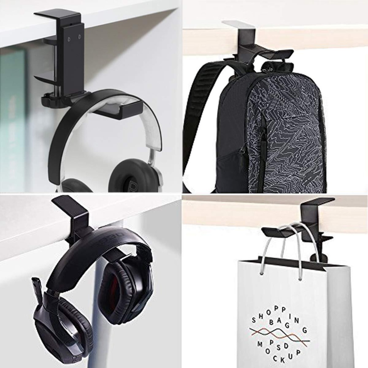 【多用途】ヘッドセットスタンドは、ヘッドホンの掛けフックだけでなく、かばん、傘、服などのハンガーとして使用できます。