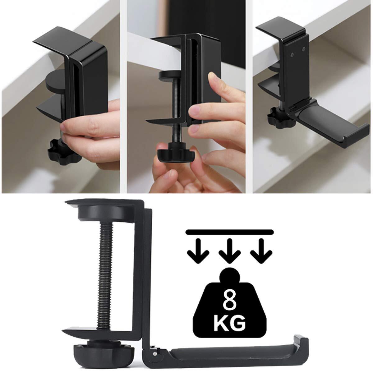 【取り付け簡単】ヘッドフォンスタンドは、ネジクランプを採用し、簡単に設置できます。取り外しも簡単で、使用しない時、ヘッドホンフックを取り外しても、デスクの上に何の跡も残しません。