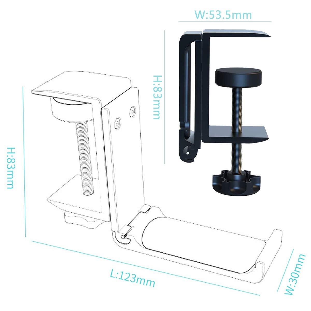 Odowalker 折り畳み式ヘッドホンスタンド テーブルフック 折りたたみフック デスクトップスタンド テーブルフック アルミ合金製 ヘッドホンハンガー ミニ六角レンチ付き ヘッドセット ハンガー (ブラック)