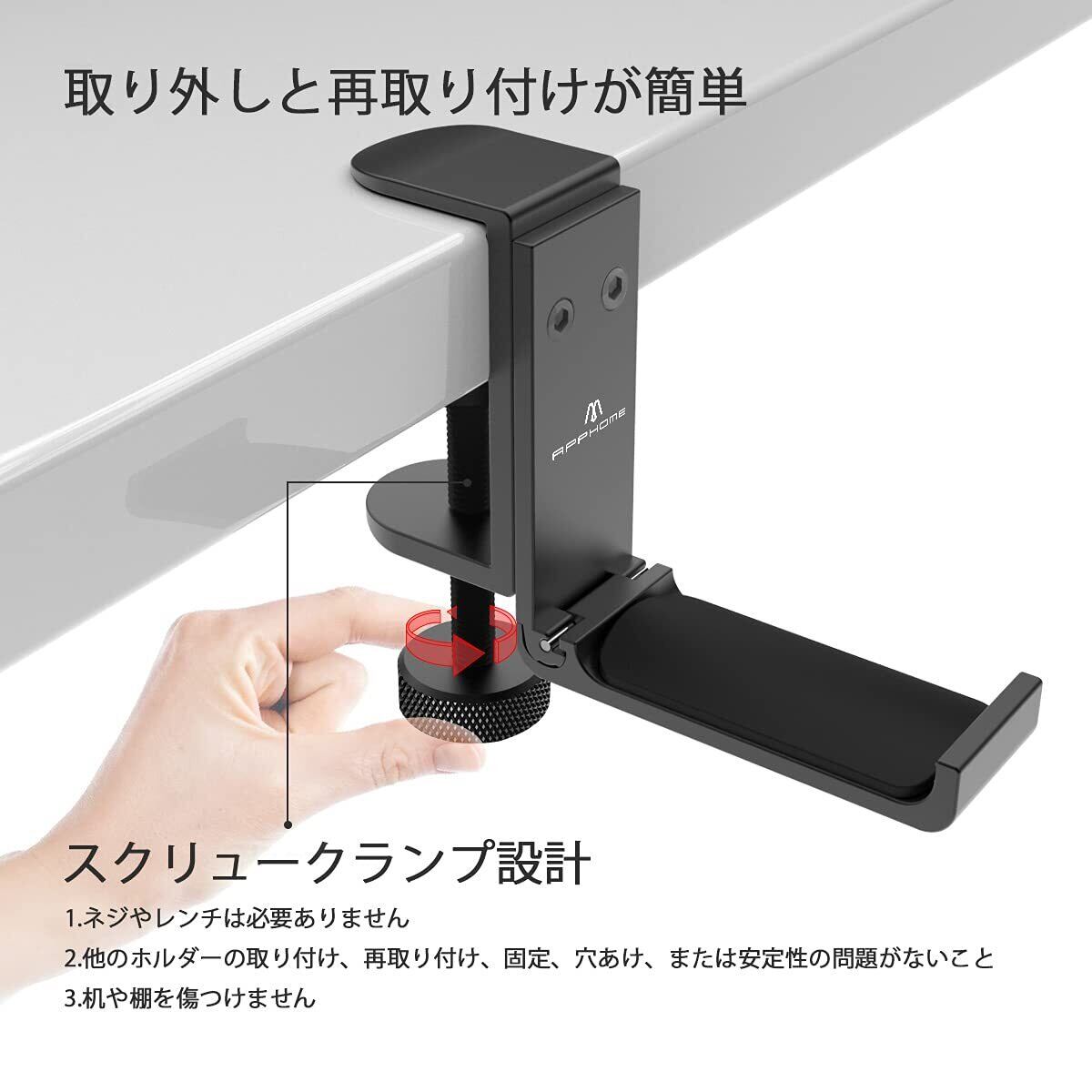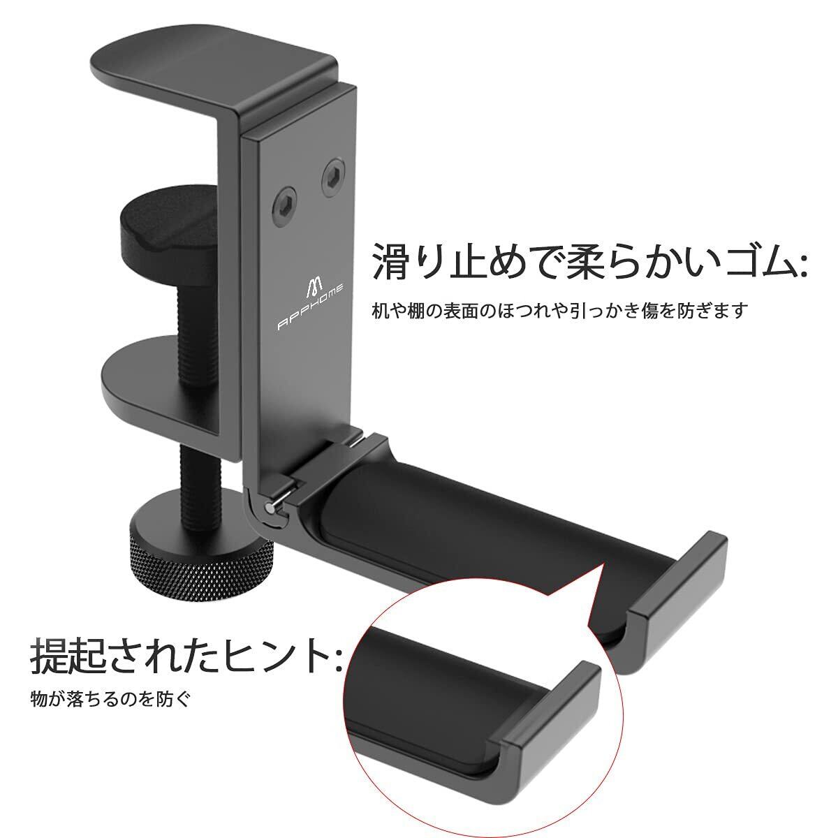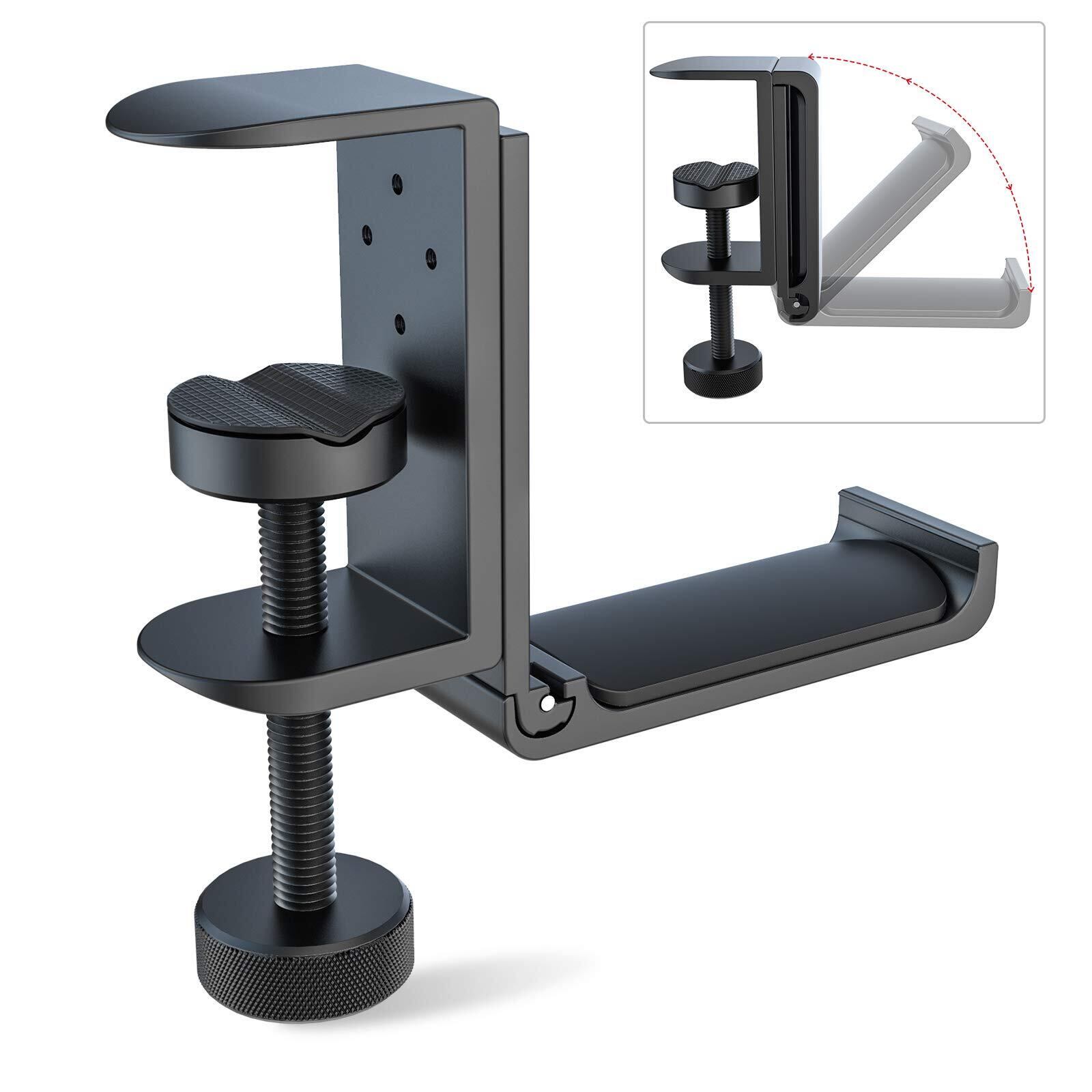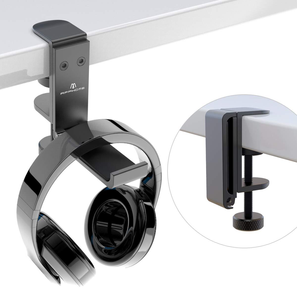APPHOME 改良バージョン卓下ヘッドホンハンガー ホルダー スタンド アルミニウム合金 製 クランプ式 折り畳み式 黒 (1個)