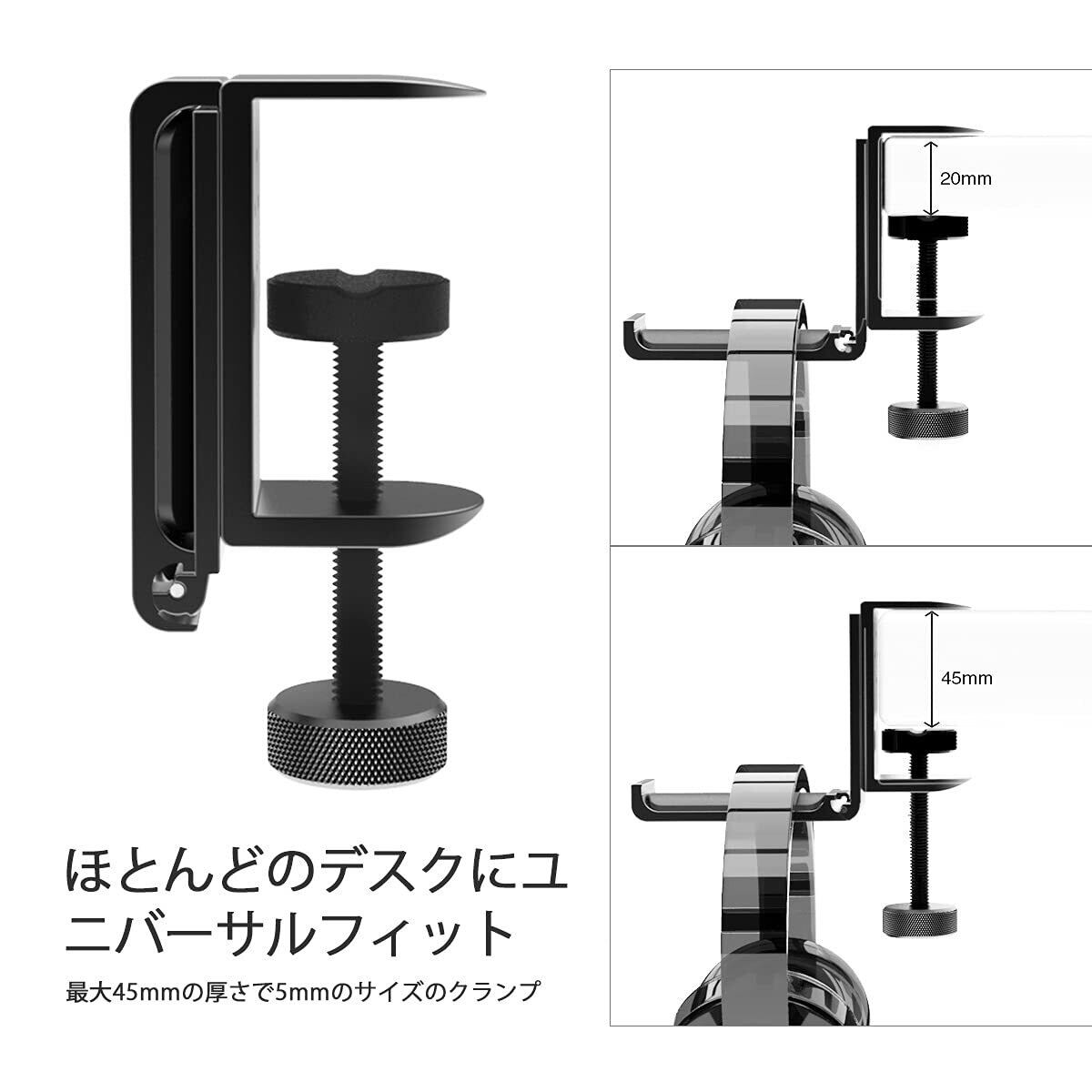 ■【クランプ式で抜群の安定性!】頑丈なクランプ式設計により、デスクにしっかりと固定され、使用中に動いたり倒れたりする心配がありません。これにより、安心してヘッドフォンを掛けることができます。