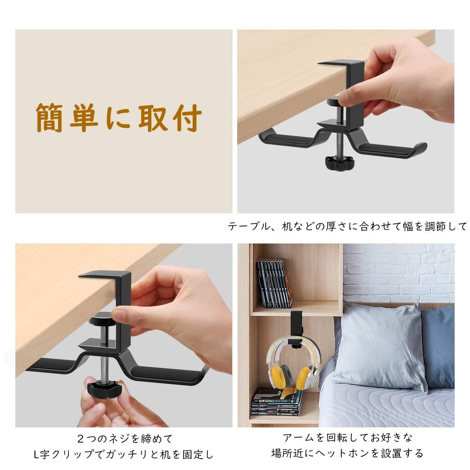 ■【革新的なクランプ式設計!】頑丈なクランプでデスクにしっかり固定でき、使用中に動かず安定感抜群です。快適にヘッドフォン、ケーブル、さらにはバッグも整理できます。