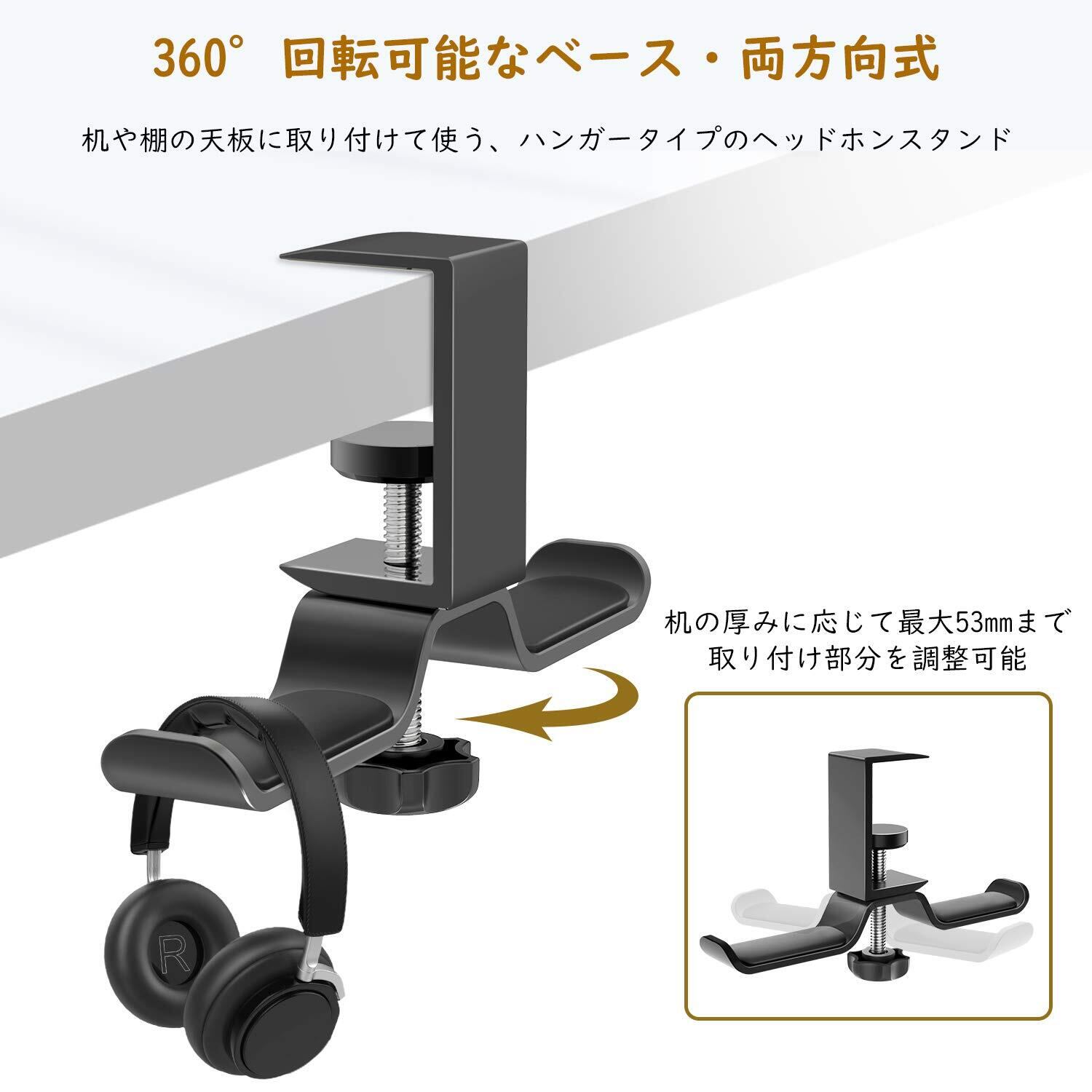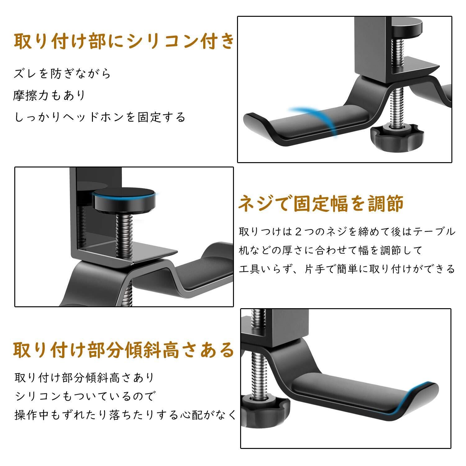 【優れた素材】 耐久性に優れたのアルミニウム合金と高品質のABS材料で作られており、形崩れにくい安定感ある長く使えます、ヘッドホンハンガーは吊り下げ式で耐荷重が4KGまでで、ご使い前にご注意ください。