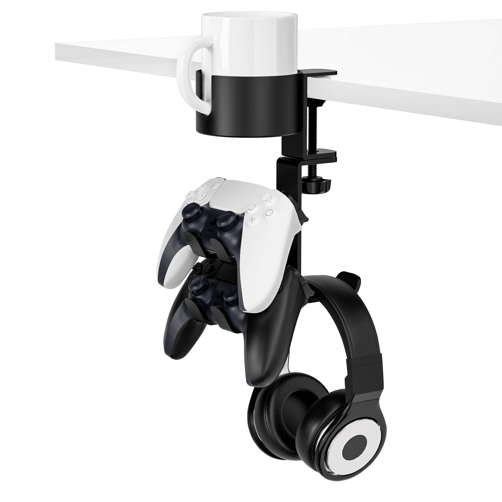 MoKo コントローラーホルダー ヘッドホンスタンド 8.5cm内径ドリンクホルダー マルチ収納 3in1 3台同時に収納可能 耐荷重9kg 360度回転 アルミ製 クランプ式 まとめ掛け整理 取り付け簡単 SonyAudio-Technica/Gaming/PS5/4/PanasonicBOSE/AKG/KingTopなどに対応 Black