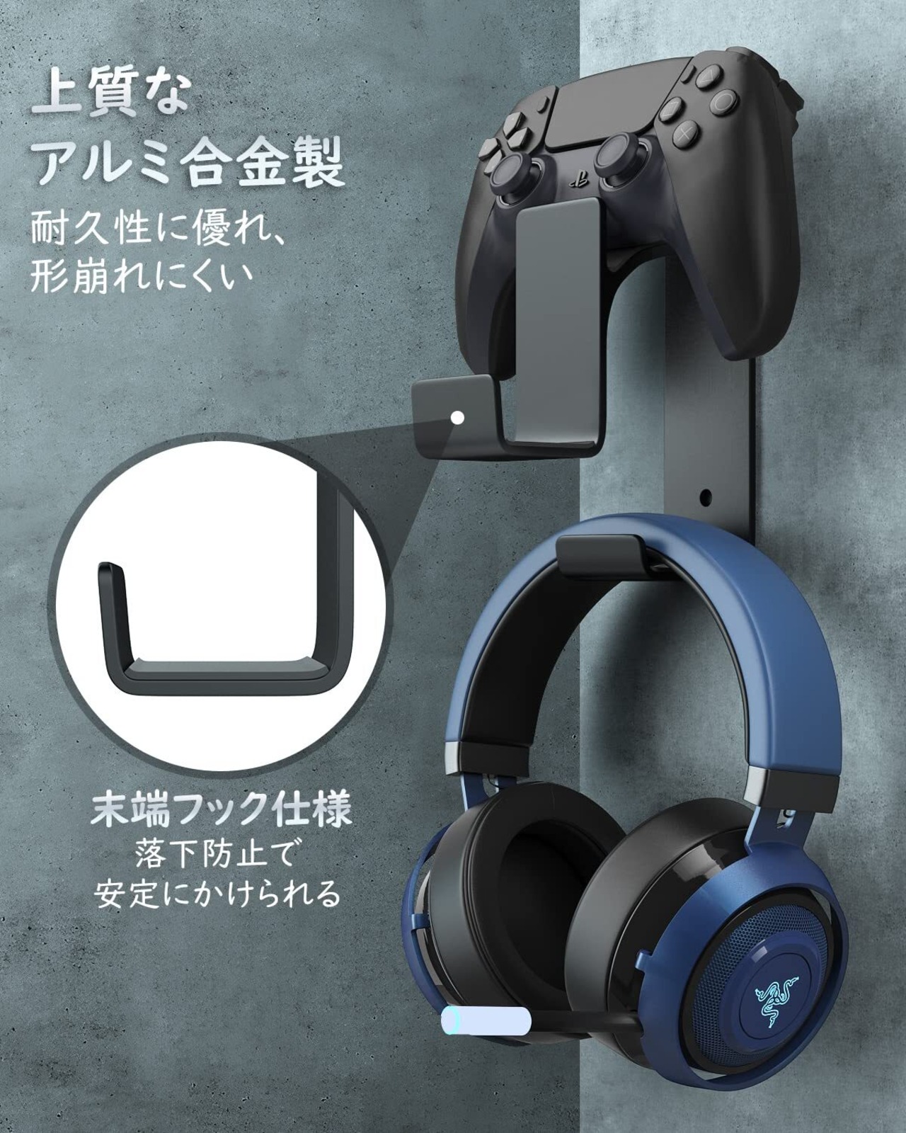 ■【省スペースでスマートな収納!】スペースを取らずに、ヘッドホンやコントローラーをすっきり整頓。「ヘッドホンハンガー」としても使えるため、デスク周りを美しく整理することができます。ゲームや音楽への没入感をサポートします。