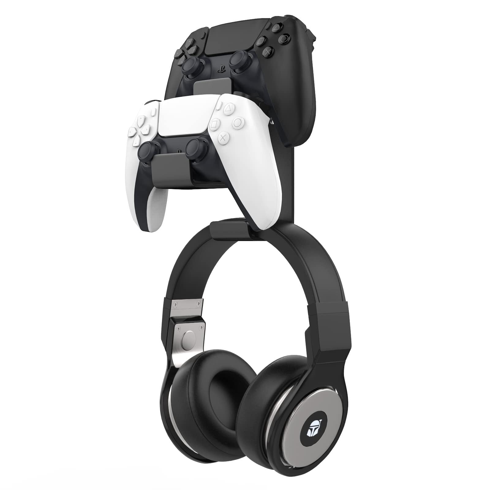 MoKo コントローラー スタンド 壁掛け 3台同時に収納可能 耐荷重2kg ヘッドホンハンガー ゲームコントローラー収納ラック スタンドコントローラー フック ヘッドセットスタンド ホルダー アルミ製 組み立て不要 貼り付けタイプ PS5/PS4/Switch/Lite/Steam/PC/Xbox One/Sony/KingTop対応 Black