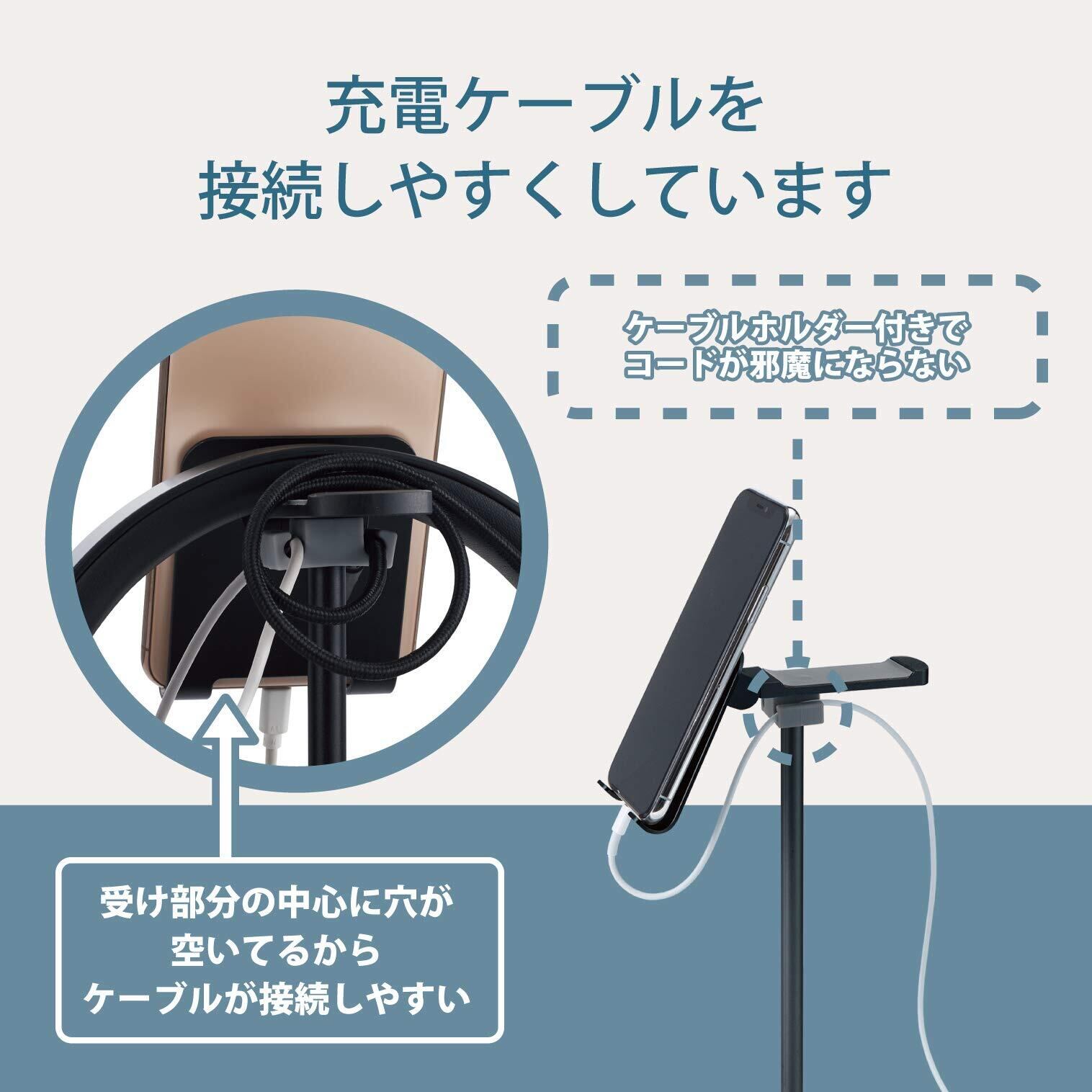 ■ ホルダー部の受け部分は中心が開いており充電ケーブルを接続しやすくしています。