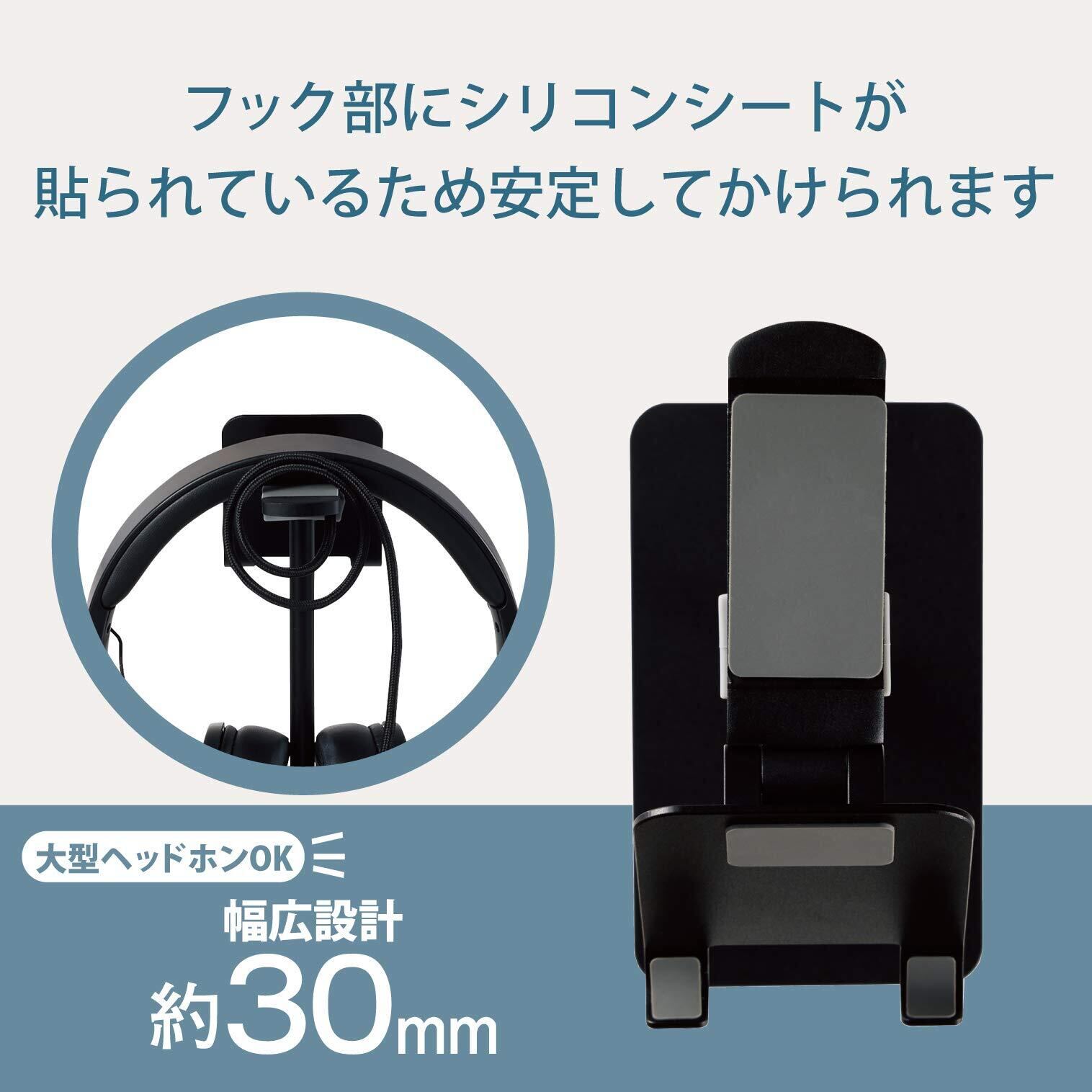 ヘッドホンをかけておくフック部は、シリコンシートが貼られており、約30mmの幅広設計のため大型のヘッドホンでも安定してかけておけます。