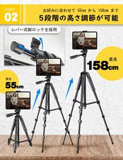 ■【最大158センチの高身長設計で撮影の自由度アップ!】本製品は最大長158センチのカメラ三脚で、様々なアングルからの撮影が可能です。自宅のスタジオやアウトドアで、あなたのクリエイティブな表現を支えます。