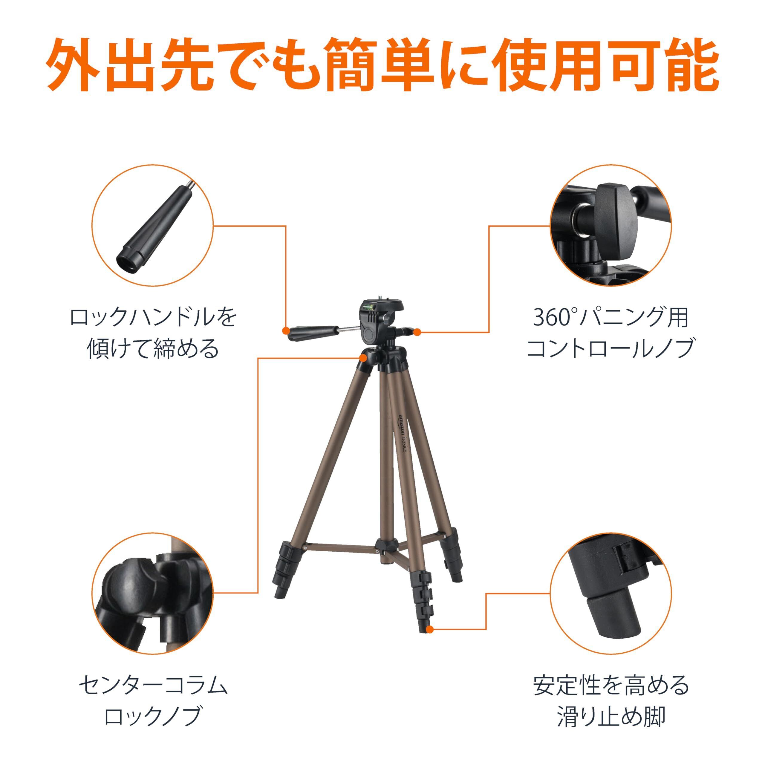 ■【全高127cmの軽量設計で持ち運びラクラク!】本商品は、全高127cmのベーシック三脚で、軽量アルミ素材を採用。旅行や外出時でも簡単に持ち運べ、思い出の瞬間をいつでも捉えることができます。