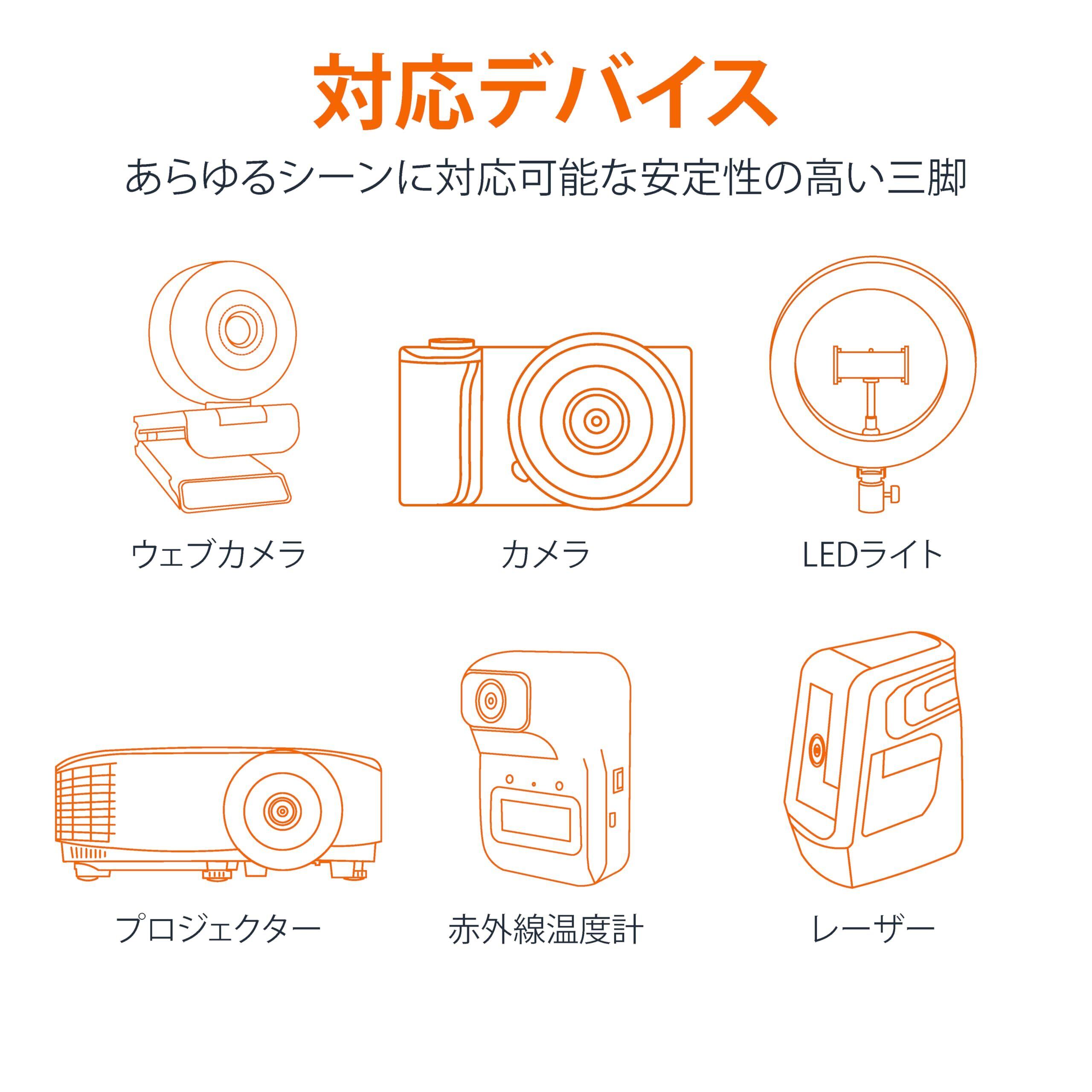 ご注意: 重量のある高級デジタル一眼レフカメラ、長いレンズ付きカメラ、大型望遠鏡の取り付けは推奨されていません。機器の総重量は2kg (4.4ポンド)を超えないようにしてください。