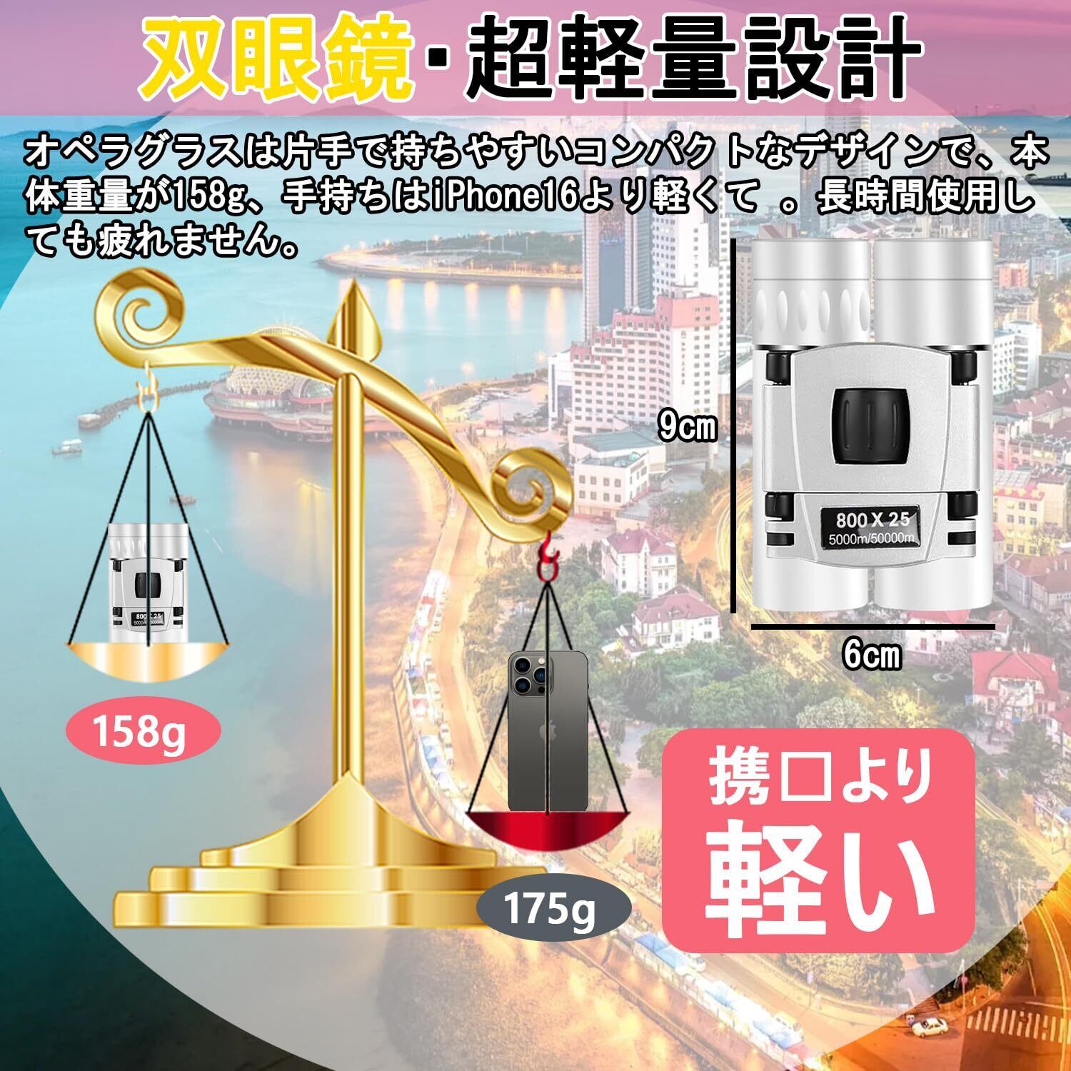 双眼鏡 ライブ用 ドーム&超軽量158gでコンパクト:オペラグラスは片手で持ちやすいコンパクトなデザインで、本体重量が158g、手持ちはiPhone16より軽くて 。長時間使用しても疲れません。コンパクトでカバンや首掛けて持ち歩いても邪魔になりません。折りたたむと手のひらサイズになり、バッグに楽々収納できます。お子様や女性に最適。コンサートやスポーツ観戦、ライブ、オペラ、観劇、野鳥観察などに最適です。