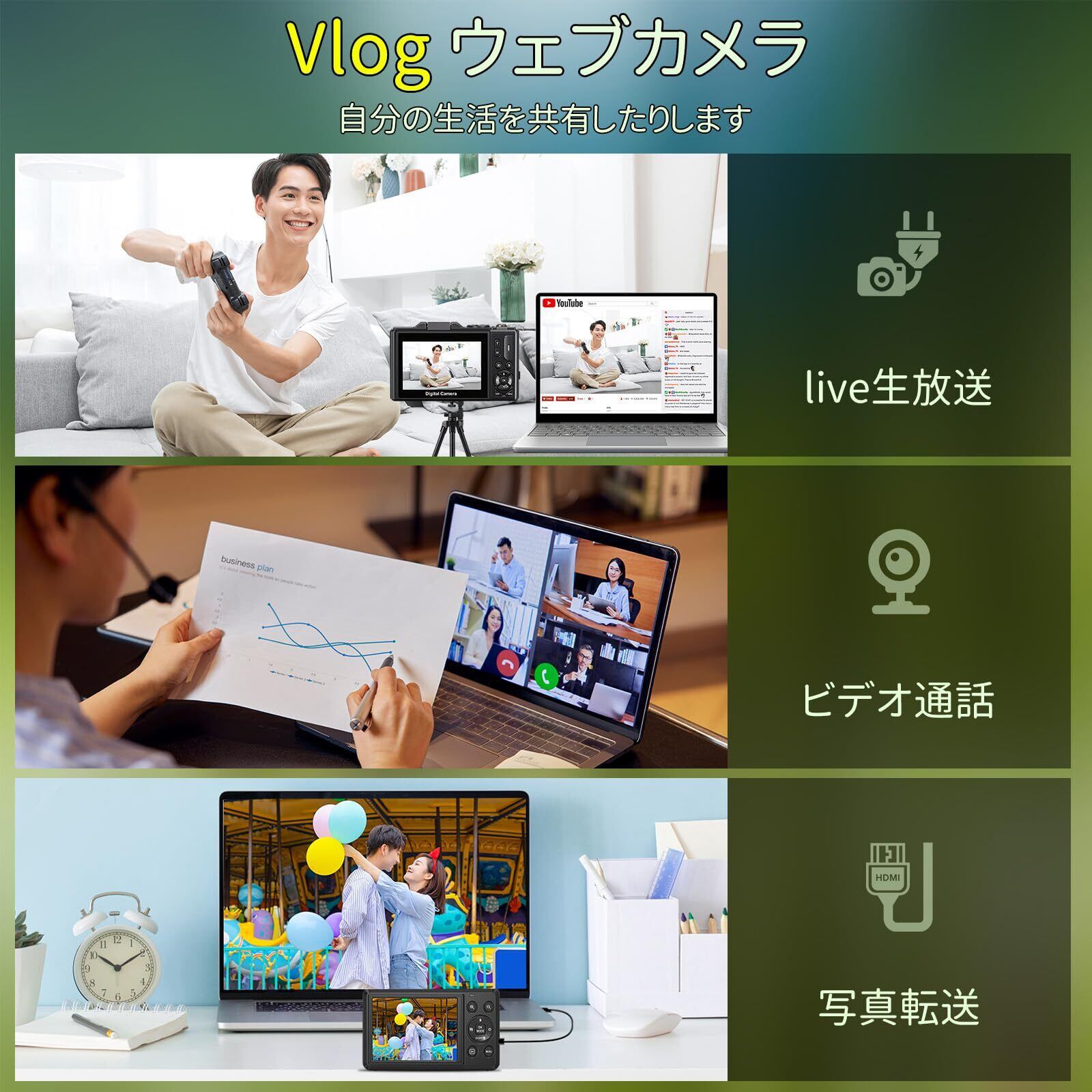 【多機能&多様な撮影モード&ウェブカメラ】このデジカメ5k、写真や動画を撮影する機能だけでなく、連続撮影、一時停止、スローモーション、多言語対応、オートフォーカス、タイムラプス動画、ループ録画などの機能も搭載しております。また、ウェブカメラとしても使用可能で、ライブ配信やビデオ通話でも簡単に対応します。YouTube、Facebook、Xなどのソーシャルメディアでの配信や通話が簡単にします。