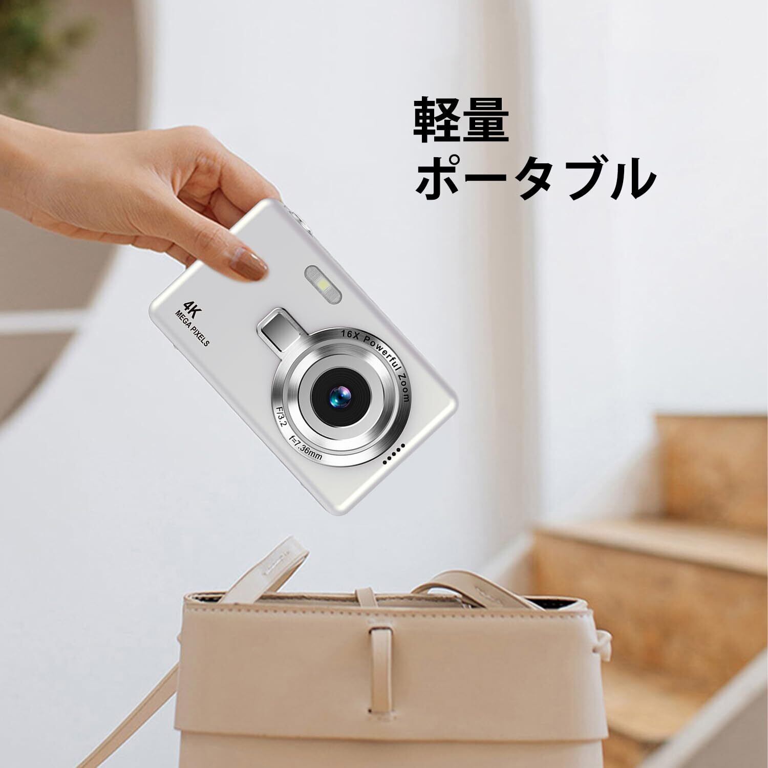デジカメ Acbaeta【4K動画撮影、5000万画素】デジタルカメラ 32GB Micro SDカード付き AFオートフォーカス コンパクトカメラ 2.7インチの大画面 16倍ズーム フラッシュ 手振れ補正機能を備えています ウェブカメラ 充電式 大容量バッテリー 軽量 日本語の取扱説明書 学生 初心者にも最適です 修学旅行