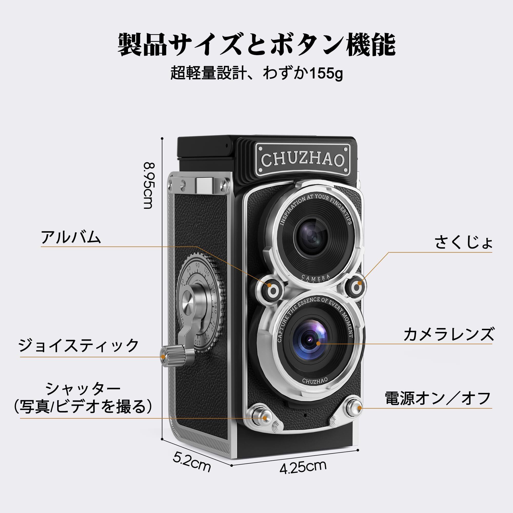 【数量限定】CHUZHAO ヴィンテージミニデジタルカメラ ポータブルTLRスタイル レトロでコンパクトな小型ポケットサイズ 1080Pビデオカメラ 12MPオートフォーカス機能搭載 初心者、ティーンエイジャー、大人向け 16GBカード ネックストラップ Type-C充電ケーブル 日本語取扱説明書付き
