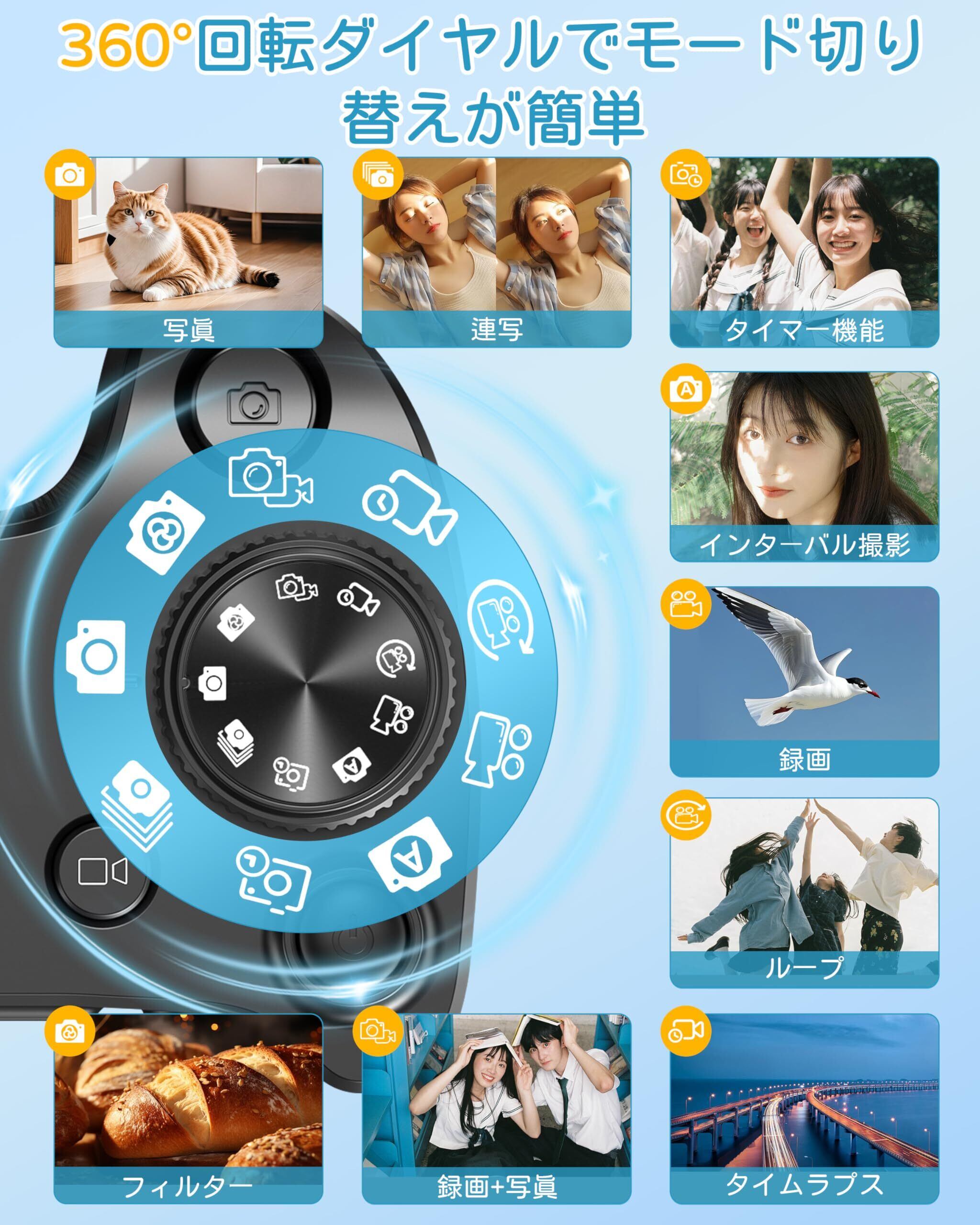 【4.0インチ IPS タッチスクリー&18X デジタルズーム&360°回転ダイヤル】一眼レフカメラの4.0インチタッチスクリーンは、カメラを操作したり、撮影した写真やビデオを見たりするための直感的で便利な制御体験を提供し、リアルな色と繊細な画質を表現することができます。タッチパネルも設定調整をより簡単にし、指で画面を軽くしてピントを合わせたり、画面を直接スライドさせたりして写真を閲覧することができます。デジタルカメラのW/Tボタンでデジタルズームができます。18 Xデジタルズームは、遠くの景色や動物、スポーツ大会でのすばらしい瞬間など画面の細部を捉えることができます。360°回転ダイヤルは、撮影モードを簡単に切り替えることができますので、初心者でもプロでも、よりスムーズで効率的な撮影を楽しむことができます。
