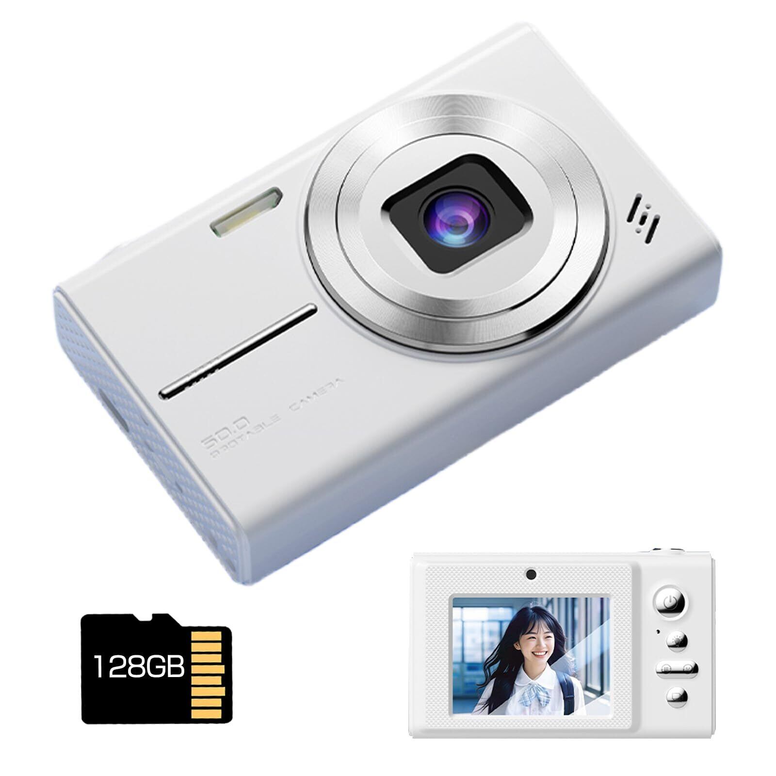 【在庫限り】コンパクトデジタルカメラ!前後双自拍、6800万像素、128GBカード付き、初心者に最適 (YK)