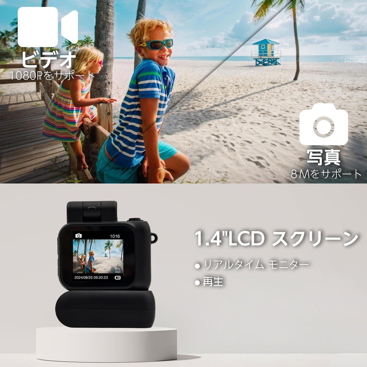 ■【簡単操作で初心者に最適!】1.4インチの液晶画面により、撮影した写真や動画をすぐに確認できます。直感的な操作性が魅力で、初心者から子供まで誰でも簡単に操ることができます。