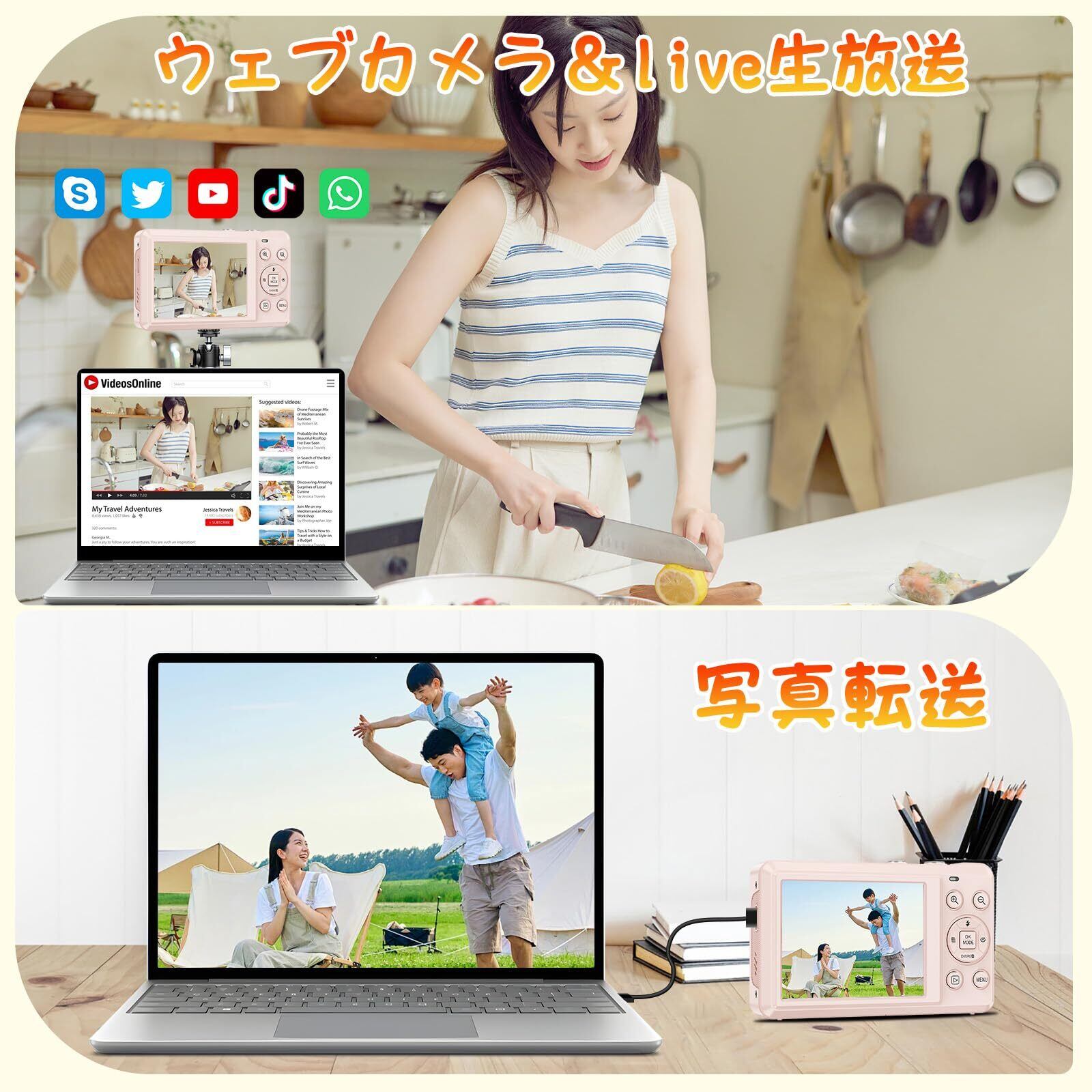 デジタルカメラ 5K 7200万画素 デジカメ 2.8 インチスクリーン 16 倍デジタルズーム オートフォーカス 近接撮影 定時撮影 内蔵フラッシュ 自撮り マイクロSDカード付き ウェブカメラ コンパクトVLOG 軽量 携帯便利 初心者 カメラ 卒業式 旅行 クリスマス(ピンク)