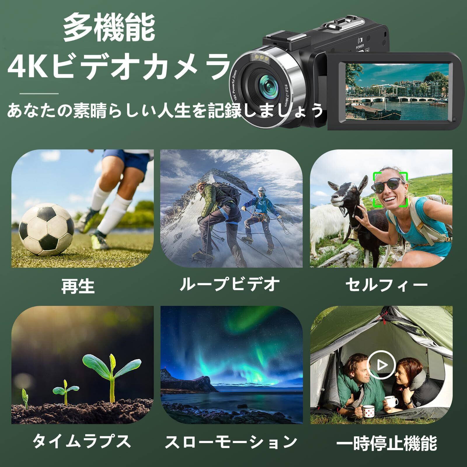 ■【7500万画素で高画質撮影を実現!】このビデオカメラは、7500万画素の高解像度で、細やかなディテールをしっかり捉えます。4Kの鮮やかな映像を通じて、大切な瞬間を美しく記録でき、旅行やイベント、Vlog撮影に最適なパートナーです。