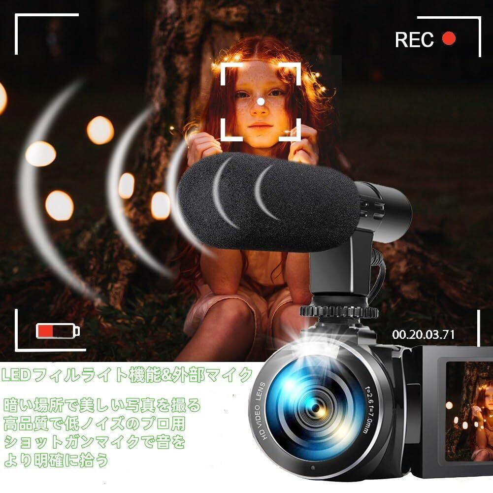 【2*バッテリ-&64GBのsdカード&ギフト&サービスに最適】YouTubeカメラには、毎日のニーズを満たすために2つの1500mAh充電式バッテリーが装備されています。 電力不足を心配する必要はありません。 充電しながらの録画にも対応しています。このビデオレコーダーは軽量で持ち運びに非常に便利です。 クリスマスや誕生日などのギフトとしても使いやすいデジタルビデオカメラです。 4K ビデオカメラにはマイクが内蔵されており、外部マイク (別売り) をサポートしています。 最大128GBのSDカード(64GBのSDカードを含む)をサポートします。SDカード(Class10、読み込みスピード80M/S以上のものを推奨)を入れてからご使用ください。そして、ご使用になる前に、カードをフォーマットしてください。一年付き、ご使用になる前に、ちゃんと説明書を読んでください。 ご質問がございましたら、お気軽にお問い合わせください。当社のカスタマーサービスチームが24時間以内に対応いたします。