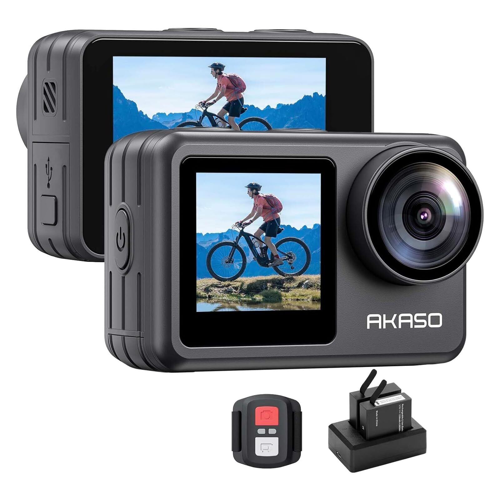 AKASO Brave 7 LE アクションカメラ 4K60FPS 20MP IPX7本機防水 40M防水 水中カメラ 六軸手ぶれ補正 デュアルカラースクリーン タッチパネル式 タイムラプス WiFi/Type-C外部マイク対応 1350mAhバッテリー2個 リモコン付きアクションカム
