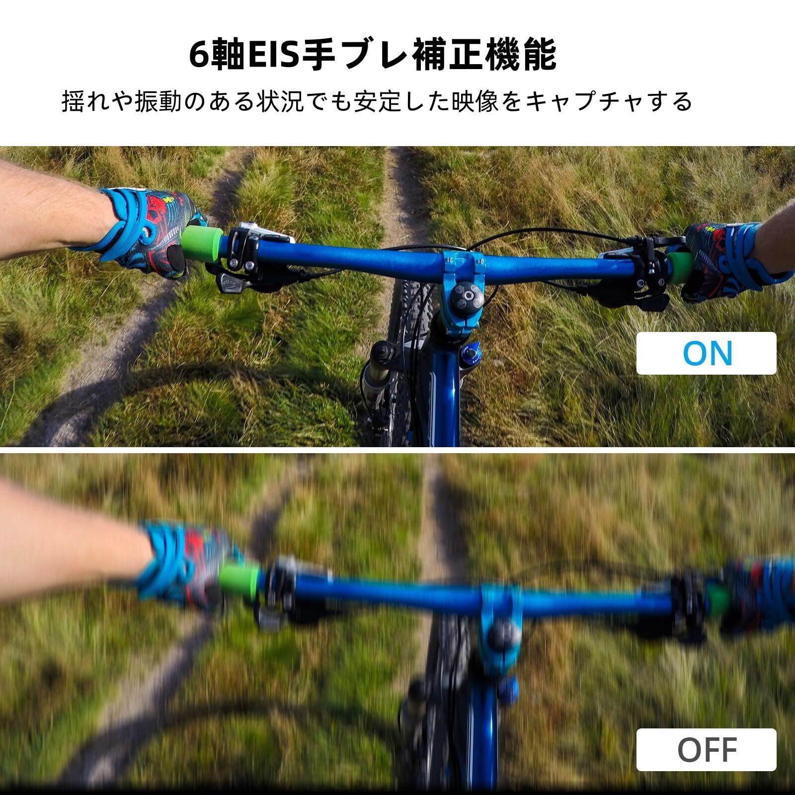 ■【手ブレを最小限に抑える六軸手ぶれ補正!】六軸EIS手ぶれ補正機能を搭載しており、揺れの多い場面でもクリアでスムーズな映像を実現。自転車やバイク、スキーなど、アクティブな動きの中でも安心して撮影できます。