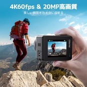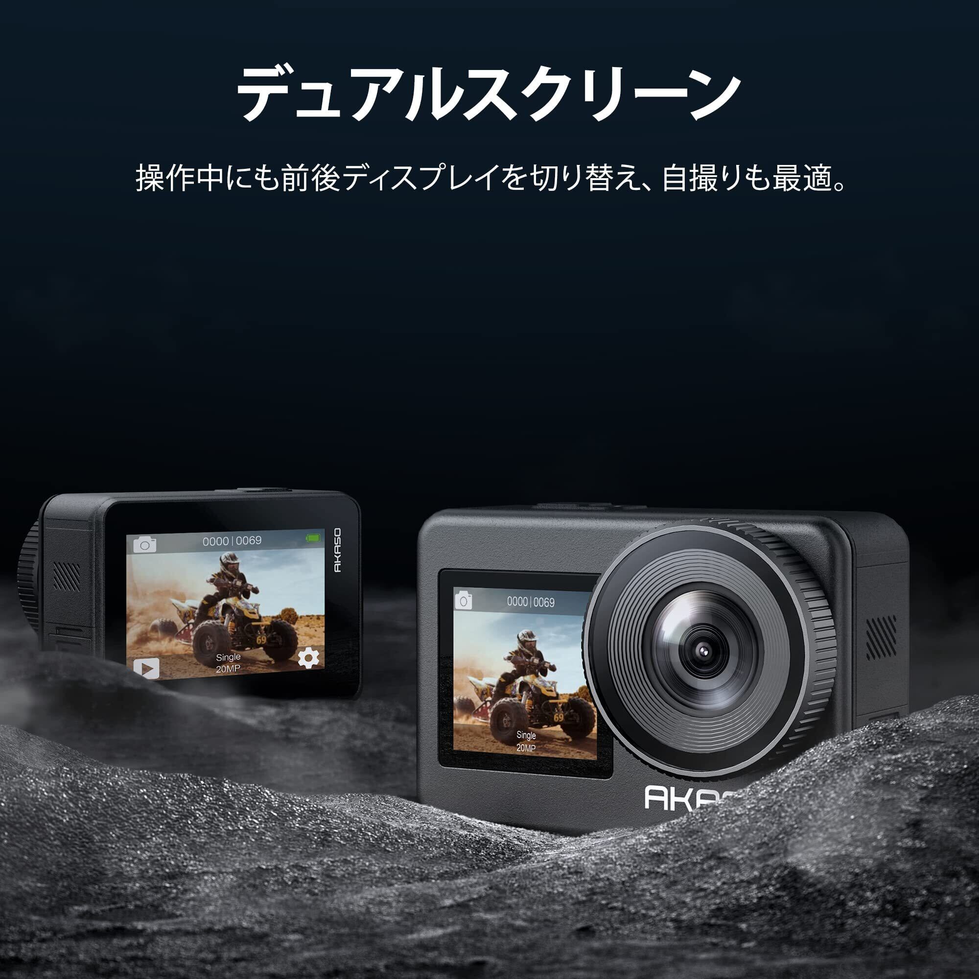 【アップグレード4K60fpsカメラ】 最高4K/60FPS解像度、20MP画素を搭載したAKASO Brave 7アクションカメラを使用すると、素晴らしい写真や高精細でビオを撮影でき、人生の美しさと驚異をはっきりと記録できます。革新的なデュアルカラースクリーンデザインにより、背面と前面の視野角を自由に変更できます。特に、2インチのリアタッチスクリーンは応答性が高い、優れたクリアな再生体験を提供できます。