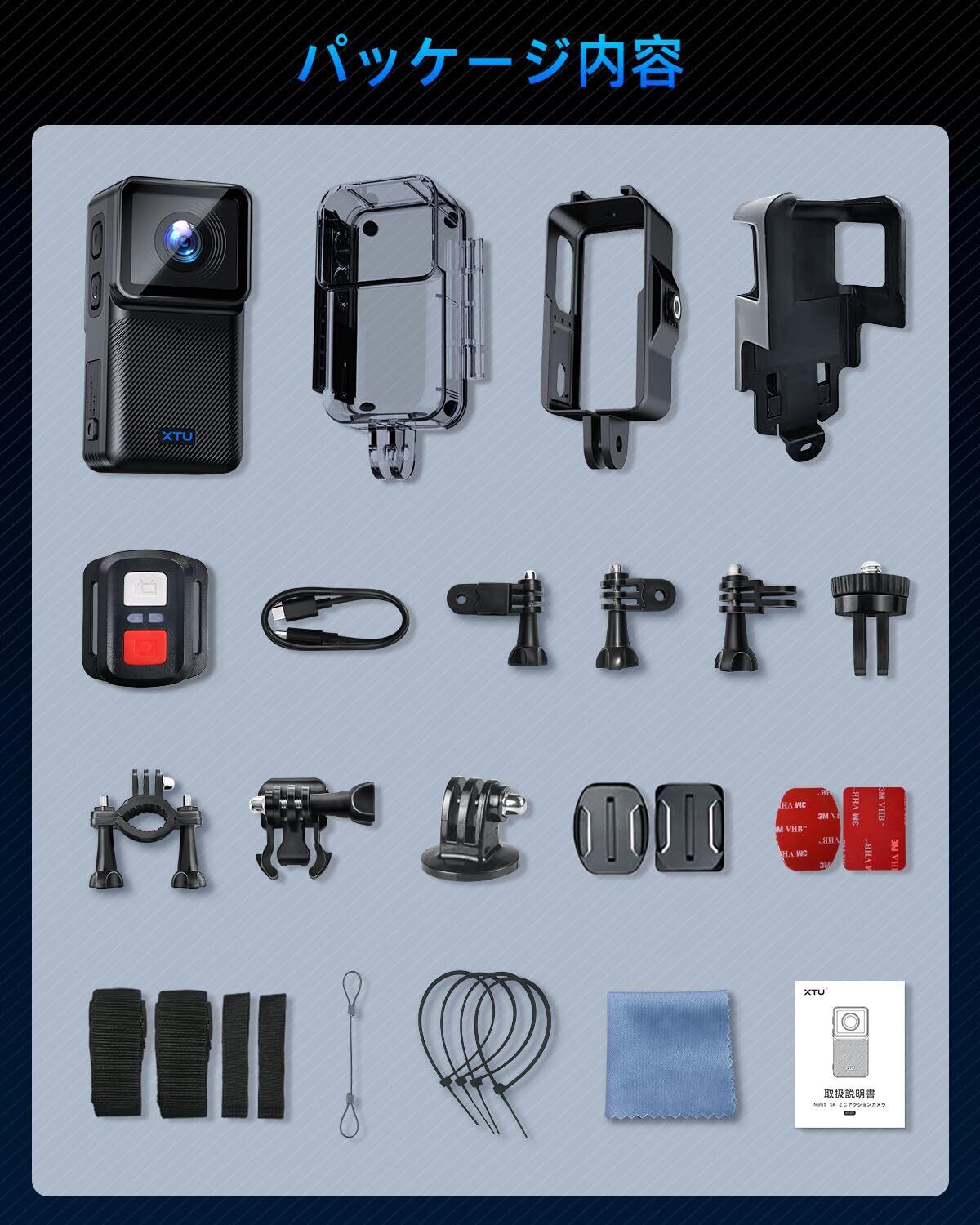 【特別価格】XTU mini1 アクションカメラ 5K 32MP 超小型 ウェアラブルカメラ 本機防水5m 6軸手ぶれ補正 vlogカメラ 縦向き撮影 1/2.5インチCMOS搭載 超強夜視 事前録画/HDR/ドラレコ機能搭載 1350ⅿAhバッテリー内蔵 5GWiFi対応 日本語説明書付き 豊富なアクセサリー