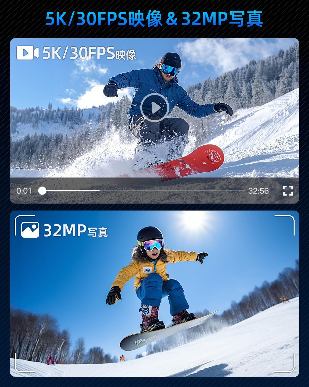 ■【高精細5K映像で思い出を美しく記録!】XTU mini1アクションカメラは、驚異の5K解像度と32MPの高画質センサーを搭載し、重要な瞬間や冒険を鮮明に撮影します。細部までくっきりとした映像で、あなたの活動をリアルに表現します。